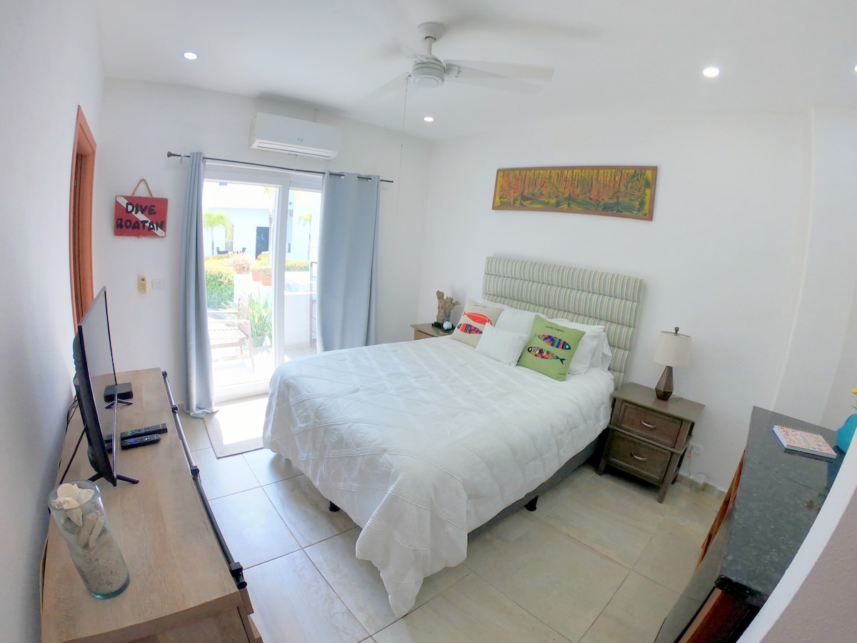 Ifulethi elithokomele e-Sandy Bay, e-Roatán, emizuzwini embalwa ukusuka ebhishi. Jabulela igumbi lokugezela eliphrayivethi, i-AC, i-WiFi enokwethenjelwa, nendawo yokusebenzela-ilungele abantu abahamba ngedijithali, imibhangqwana, noma izihambi ezihamba zodwa. Indawo ephephile, ethulile enokufinyelela okulula kwe-snorkel, ukutshuza, nezindawo zokudlela zasendaweni. Indawo yakho ekahle yokungcebeleka, ukuhlola, noma ukusebenzela ekhaya e-Caribbean.