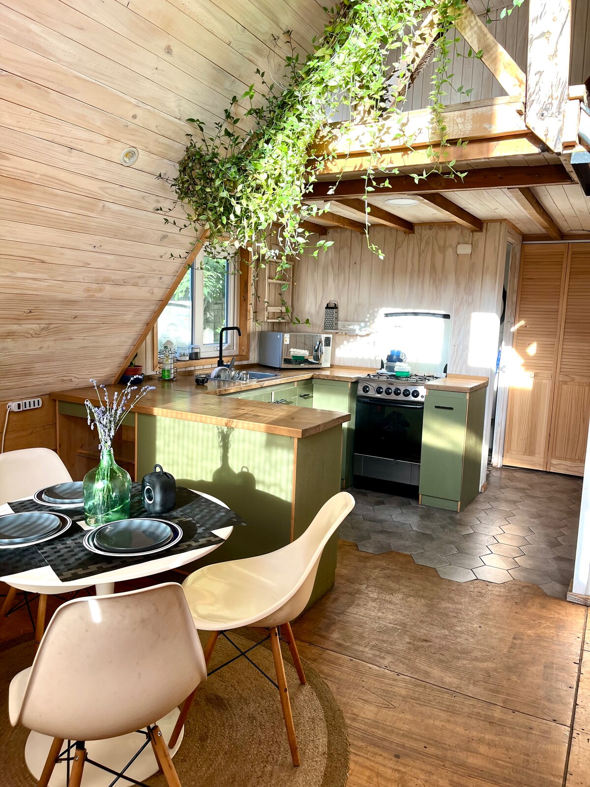 Indlu eyakhiwe ngamapulangwe enhle -Martín Pescador - Ibheji lokhuni elingu-55 mts2 elinamakamelo angu-2, elilodwa elinombhede olala abantu ababili onombhede ongu-2-plax nombhede owodwa oyingxenye. Ukufudumeza nge-radiator kagesi nokushisisa okwengeziwe kwe-Pellet. Indlu yokugezela evulekile enomshini wokuwasha ifakiwe. Ikhishi elihlotshisiwe nefriji elincane. Ukwakhiwa okuhle kakhulu nokwahlukanisa okushisayo, phansi ngokhuni kanye nawo wonke amafasitela e-Termopanel. Inketho yesidlo sasekuseni esihle kakhulu ngo- $ 7,500 e-Chile p/p.