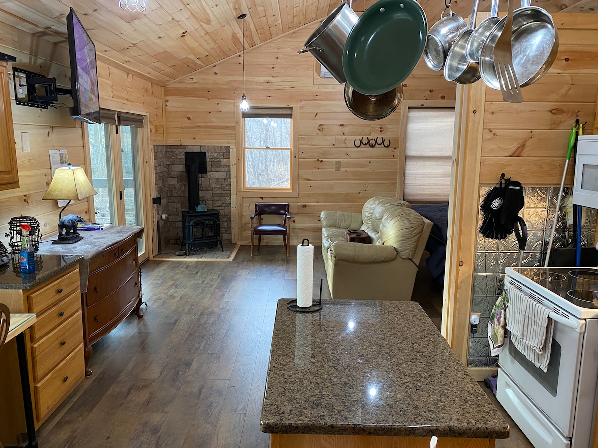 Ukuphumula okuseceleni kwabantu abashadile endaweni esanda kwakhiwa (2020) eyodwa yokubuka indlu eyakhiwe ngamapulangwe enamafindo ephini. Indawo yokupaka ifakwe esiteshini sokukhokhisa esingu-230Vac/120Vac sezimoto zikagesi. Indlu eyakhiwe ngamapulangwe inakho konke ukunethezeka kwekhaya. 35 foot Trex deck phambi kwendlu eyakhiwe ngamapulangwe ukubuka izingoma izinyoni nama-hummingbirds. Khalisa ukuvikeleka kukhubazekile. Indandatho yomlilo yangaphandle enezinkuni eziningi. Ama-Kayaks, ama-float, nokudoba okunikezwa ukuzijabulisa emfuleni omuhle. Indlu yethu eyakhiwe ngamapulangwe inombhede omkhulu owenzelwe abantu abashadile.