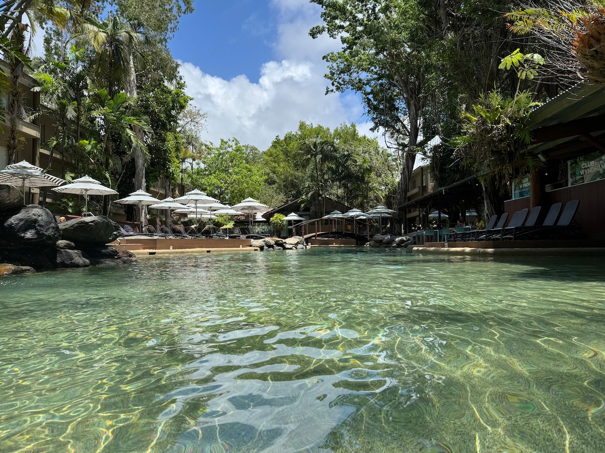 I-PORT DOUGLAS LAPHO I-GREAT BARRIER REEF NE-DAINTREE IHLANGANA KHONA. I-Deluxe King Studio; indawo ekhoneni yendawo ethulile ye-resort. Umatilasi womcamelo ophezulu, onokwesekwa emuva. Ifriji Enkulu. Amapuleti, izinto zokusika, i-toaster. I-FOXTEL, I-NETFLIX, izindawo zokuphumula kuhlanganise nendawo yokubhukuda enempophoma nebha yokubhukuda. I-Treetops Restaurant. Ijimu, itafula lokubhukuda, ithenisi yetafula, ikhona lezingane.