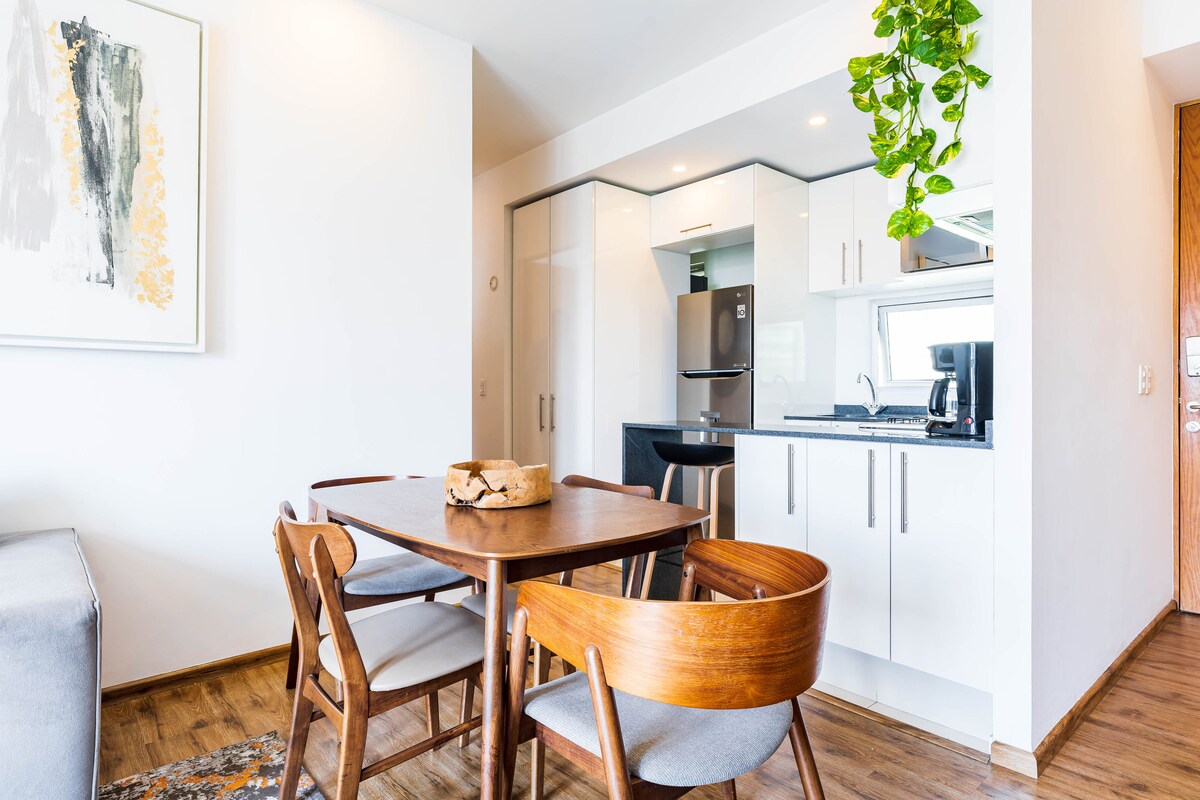 Ifulethi elikhanyayo esitezi sesi-7 (esiphezulu), eline-balcony nokubukeka kwedolobha kanye ne-Río Becerra-Viaducto Miguel Alemán. Inamakamelo okulala angu-2 anama-closet avulekile,indawo yokuhlala nendawo yokudlela, ikhishi elinakho konke, igumbi lokugezela, namafasitela asuka phansi aya ophahleni. Ama-Smart TV (50"&24") ane-Netflix, i-Prime, ne-YouTube (izivakashi zingena ngemvume kuma-akhawunti azo) .Kuhlanganisa i-Alexa, ifriji, i-microwave, nomshini wokwenza ikhofi. Ukungena kwabahamba ngezinyawo esakhiweni kunezinyathelo ezingaba ngu-10. Ilungele ukuhlala okunethezekile, okuxhunywe kahle.