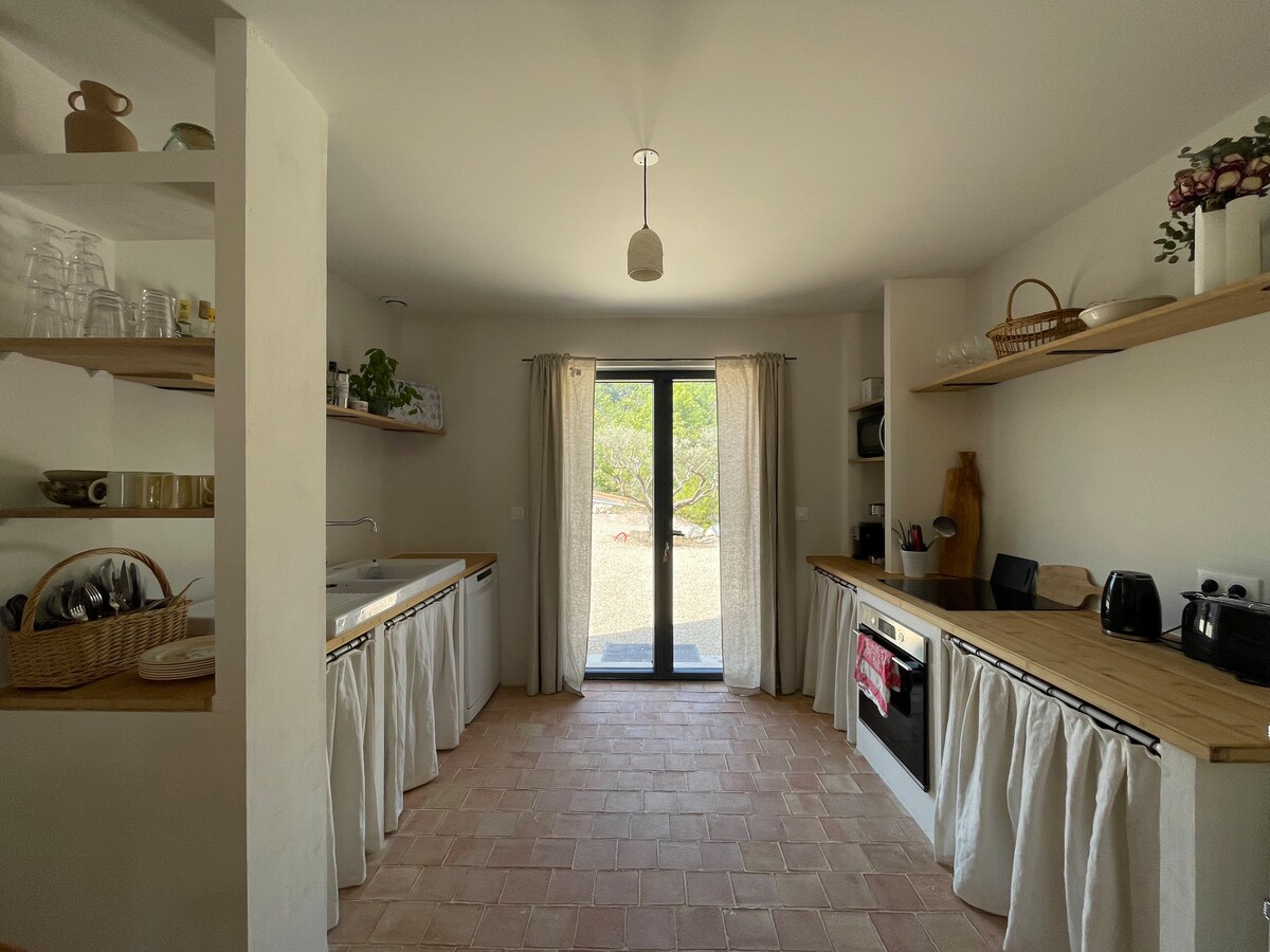 Lesi sakhiwo, indlu yasepulazini yangempela ye-Provencal, yakhiwa endaweni enkulu enamahektare angu-1.6 phakathi kwezihlahla zeminqumo namagceke. Indlwana yakho ezimele itholakala ephikweni langasese lase-West. Iphiko laseMpumalanga lihlala abanikazi njengoba indlu yasepulazini isetshenziselwa ukuqinisekisa ukuthi ngayinye i-convort nokusondelana kwayo. Unendawo yokungena eseceleni enesango kanye nepaki yemoto kuze kufike ku-4, ingadi yangasese ene-spa nendawo yakho yokubhukuda enamanzi ashisayo. Uyakwazi futhi ukungena endlini kumasevisi amaningi ukuze ujabulele ukuhlala kwakho