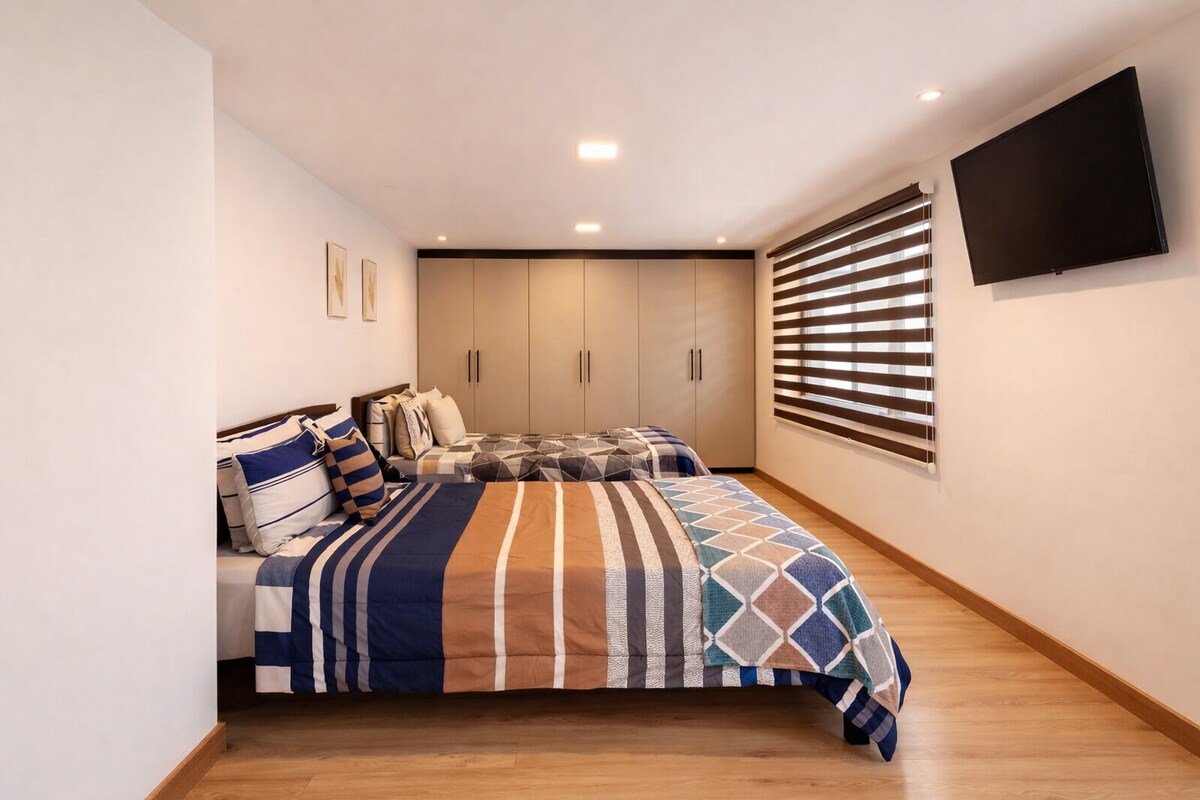 Thola imfudumalo nokukhanya kokuhlala okuvulekile, okunosilingi kanokusho wamakamelo okulala angamamitha angu-9, usilingi onamamitha angu-20 onokukhanya kwesibhakabhaka endaweni evamile/ekhishini, namafasitela amakhulu kuyo yonke indawo yokuhlala enokuthula, ethulile, nephumuzayo e-Cuenca. Amanzi ashisayo angu-24⚡️/7, i-Wi-Fi, nogesi wamadivayisi akho ngenxa yesistimu yethu yebhethri eyisipele eboshelwe ngegridi. Qaphela: ezinye izinto zikagesi ezinamandla amakhulu njenge-blow-drier neketela lamanzi azisebenzi ngesikhathi sokucisha ugesi.