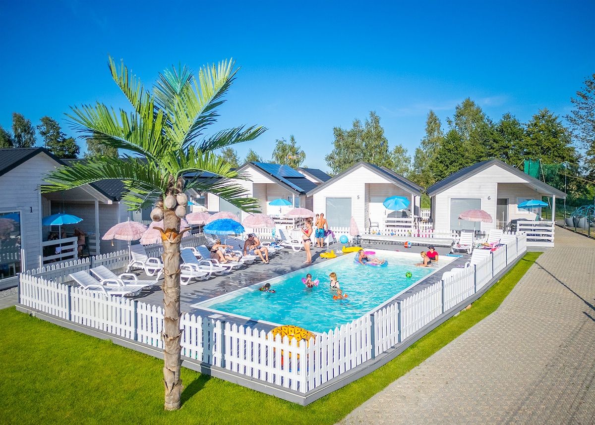 Siyakwamukela ezindlwaneni zethu ezintsha edolobhaneni elithulile, elihle lase-Gąski. Indawo yethu yokungcebeleka iqukethe izindlwana ezingu-16 endaweni enkulu lapho kukhona khona ichibi elincane lapho kuhlala khona izinhlanzi namaxoxo. Indlwana ngayinye inokungena endaweni yokosa inyama, siphinde sanikeza izivakashi zethu ama-stroller asebhishi, ama-sun lounger (2 endlwaneni eyodwa) nesikrini. Siphinde sahlanganisa amabhayisikili ezivakashi zethu. Ezinganeni, sinendawo yokudlala :)) Siqhele ngamamitha angu-700 kuphela ukusuka ebhishi elihle.