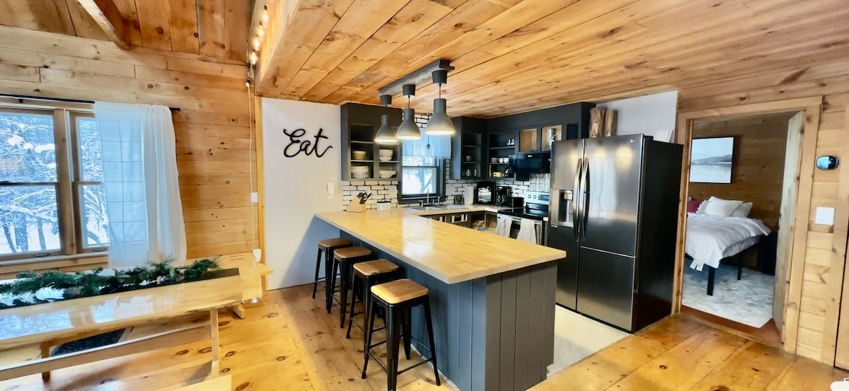 Ukushushuluza Kwentwasahlobo! Isaphulelo Sikashukela Nesikhephu esingu-20%d! U-March uyisikhathi sikashukela we-maple kanye nenkathi enkulu yezikhathi zeqhwa e-Bretton Woods (imizuzu engu-20 kuphela ukuya lapho). Indlu yokunethezeka echibini elizimele eline-Hot Tub, indawo yokubasa umlilo yangaphandle, itafula lomlilo legesi kanye newayini yamahhala, ikhishi eligcwele, i-china enhle, ishawa entsha, ibhavu lokugeza i-Jacuzzi, izindawo zokubasa umlilo zikagesi, kanye nezindawo ezimbili zokusebenza. Amahektha angu-68 + amamayela emizileni eya ehlathini likahulumeni eliseduze, lesi yisisekelo esifanele sokushushuluza eqhweni ngesikhathi sesizini kanye nokuzijabulisa okunokuthula kwasebusika. Izinja zamukelwe!