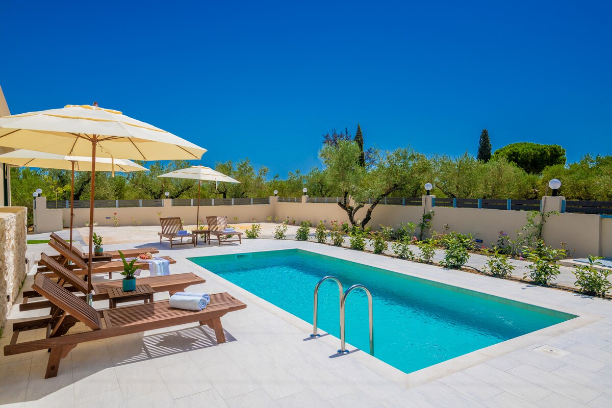 I-villa yethu yamatshe isegqumeni elincane, phakathi kwezingadi ezinhle zomnqumo, enikeza ubumfihlo obuphelele nezindawo ezinhle kakhulu ezisendaweni yokubhukuda. Njengoba iqhele ngemizuzu engu-5 ngemoto ukusuka endaweni yase-Laganas nemizuzu engu-12-15 ukusuka edolobheni lase-Zante, indawo yayo ilungele kokubili imindeni noma iqembu labangane abafuna ukuphumula nalabo abangathanda ukuhlola impilo yasebusuku egqamile nezindawo ezinhle kakhulu zokubuka isiqhingi.