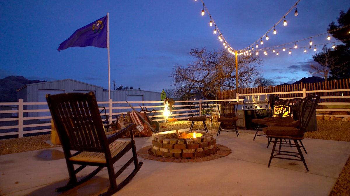 Isitudiyo esisha, esihle esisezansi kwe-Funeral Mountains ezindaweni ezingaphezu kuka-4 ezizimele! Hamba usuka emnyango wakho uye ezindaweni zomphakathi ezingenamkhawulo noma uhlole i-Death Valley eseduze. Ebusuku, jabulela ukubuka izinkanyezi ezimangalisayo ngaphandle kwezibani zedolobha. Ngaphakathi: imibhede yamakhosi, ikhishi eliphelele elinesiqhingi esingu-9', i-TV engu-65", umshini wokudlala amarekhodi we-Victrola, nendawo yokuhlamba izingubo. Indawo yokubalekela esogwadule ethulile, eseceleni, nenokunethezeka + eyenzekayo! Futhi ujabulele ukuphuma kwethu OKULULA ngaphandle kwemisebenzi noma uhlu lwezinto okumelwe zenziwe! Sinakekela konke.