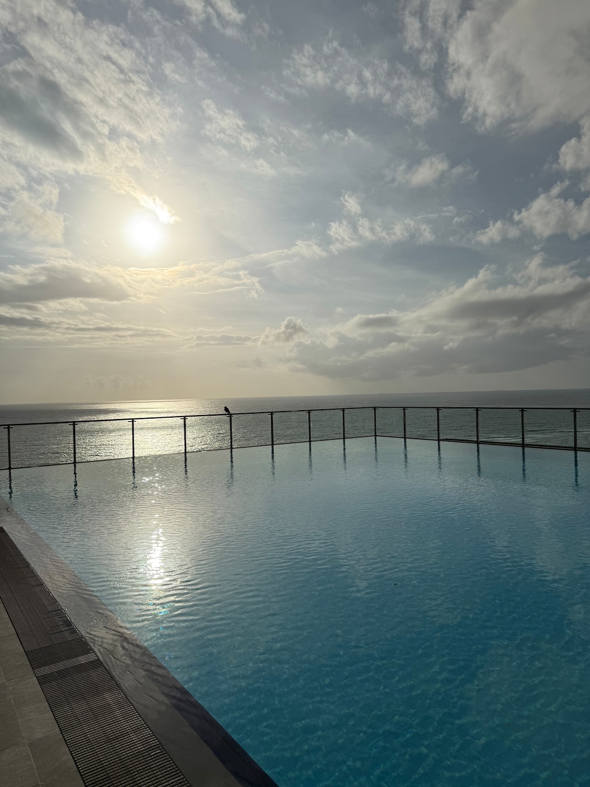 This is a 10 storied Luxury Sea Front apartment complex on Marine Drive, Colombo 04, What we offer here is the penthouse on the top most floor, which consists of 2 Bed Rooms, 2 Bathrooms, open pantry with all amenities, Unique Infinity Swimming pool, Large Living and Dining space which is open to the sea view with a sit out terrace facing the sea, The Super market is next door. High end living area, The best Sunsets. The whole family will be comfortable in this spacious and unique space.