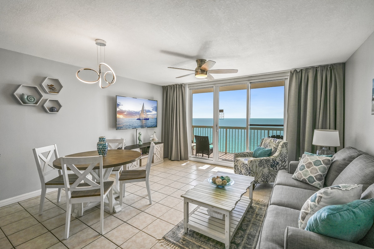 * UKUBUKWA OKUNGCONO KAKHULU & INDAWO* I-condo langaphambili lasebhishi kwenye yezindawo zokungcebeleka ezihamba phambili ze-Destin nazo zonke izinsiza! Phuza ikhofi lakho nama-cocktail ubusuka kuvulande wakho osezitezi ezingu-15 ngenkathi ujabulela ukubuka indawo yonke yamanzi acwebile ka-Destin anombala oluhlaza okotshani kanye namabhishi anesihlabathi esimhlophe. Imibhede emikhulu nemincane ethokomele nezinto zokufiphaza Amaphuli, amabhavu ashisayo, i-Tiki Bar & Cafe Ijimu, i-sauna, i-basketball, i-pickleball, ithenisi Indawo yokupaka yamahhala ne-Wi-Fi esheshayo Umbungazi ovelele Nezintandokazi Zezivakashi—bhukha ngokuzethemba! Usukulungele izinkumbulo zasebhishi? Bhukha izinsuku zakho namhlanje!