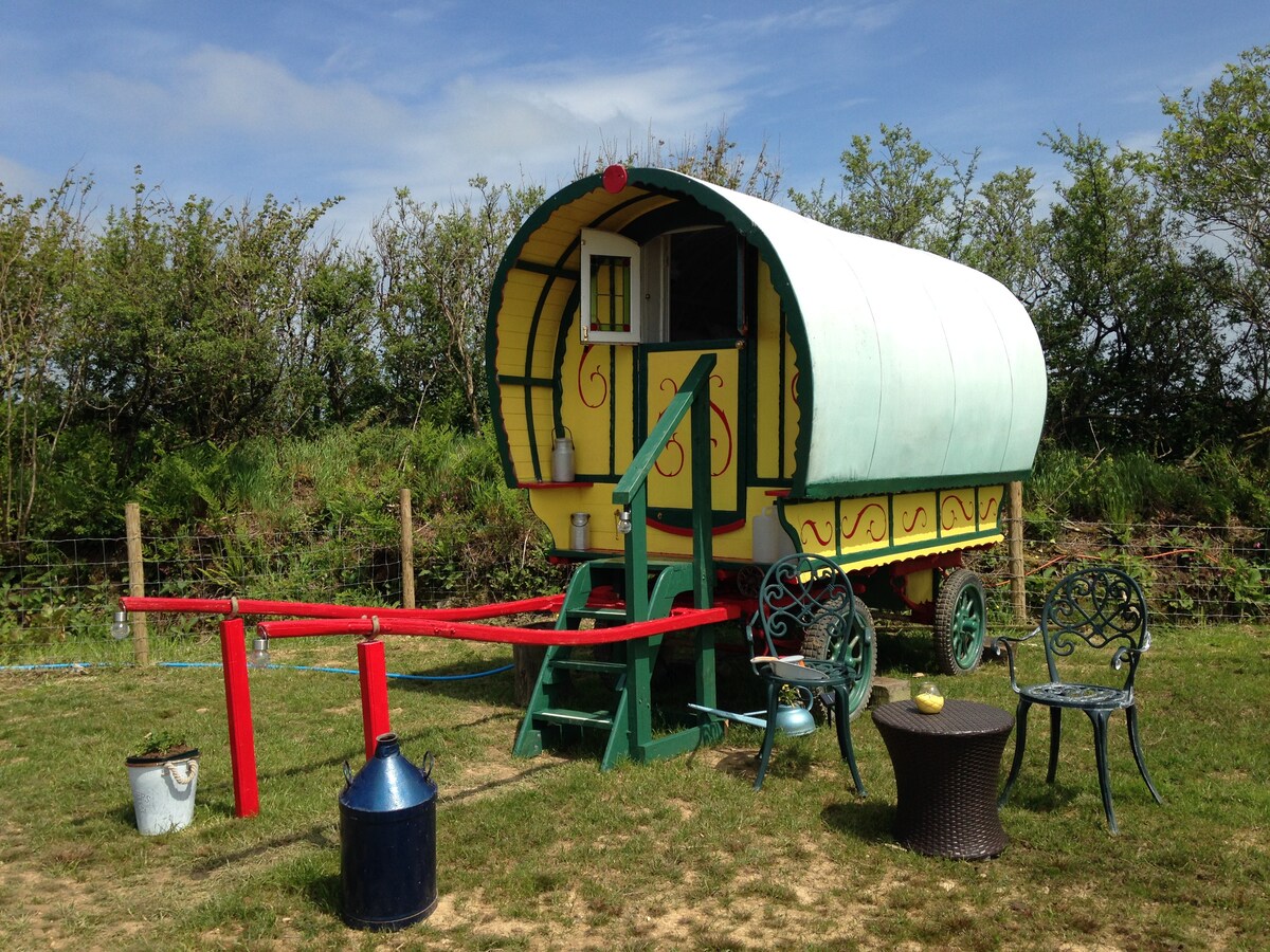 Ifakwe ku-orchard yase-Devon enemibono yezwe engaphazamiseki iyinqola yethu eluhlaza nobhavu oshisayo. Uhlezi,i-log burner, umbhede we-sleigh. Ithusi,ithusi, isikhumba.High end okunethezeka ukuxhuma ngemvelo futhi omunye nomunye ngokwakho.Ensuite igumbi elimanzi kanye nekhishi elincane.Cosy ama-pubs wendawo,izwe uhamba ngezinyawo noma unxilise inqola. Jabulela umgodi womlilo,sebenzisa i-telescope,uhlole i-Exekile eseduze,amabhishi kanye ne-Dartmoor.Retreat,ukuphumula, ukuphumula. Indawo yokuphumula. Indawo yomphakathi inomgodi womlilo enehhavini le-pizza,kanye ne-hammock ephindwe kabili ukuze uyisebenzise.