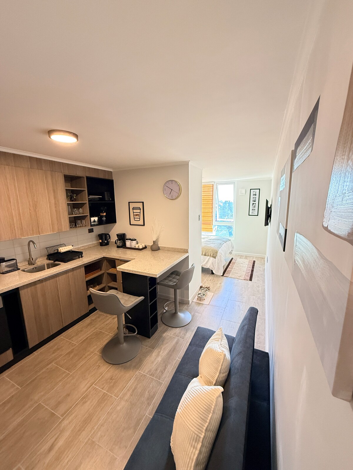 Ifulethi eligcwele elinegumbi lokulala elilodwa, indlu yokugezela. Ikhishi elinezinto, i-granite. Ukupaka kwemoto eyo-1. Ifanele abantu abangu-3 Indawo enhle kakhulu, eduze nezitolo ezinkulu, ibhange, izingubo zokuwasha, ama-pub nezindawo zokudlela, isikhungo sokuthenga, kanye ne-locomotion emnyango. Ukubukeka okuhle kwe-Laguna Chica de San Pedro de la Paz. Imizuzu engu-10 ukusuka enkabeni ye-Concepción, amaminithi angu-12 ukusuka esikhumulweni sezindiza, amaminithi angu-15 ukusuka e-Collao Bus Terminal. Umgomo wamahora angu-24.