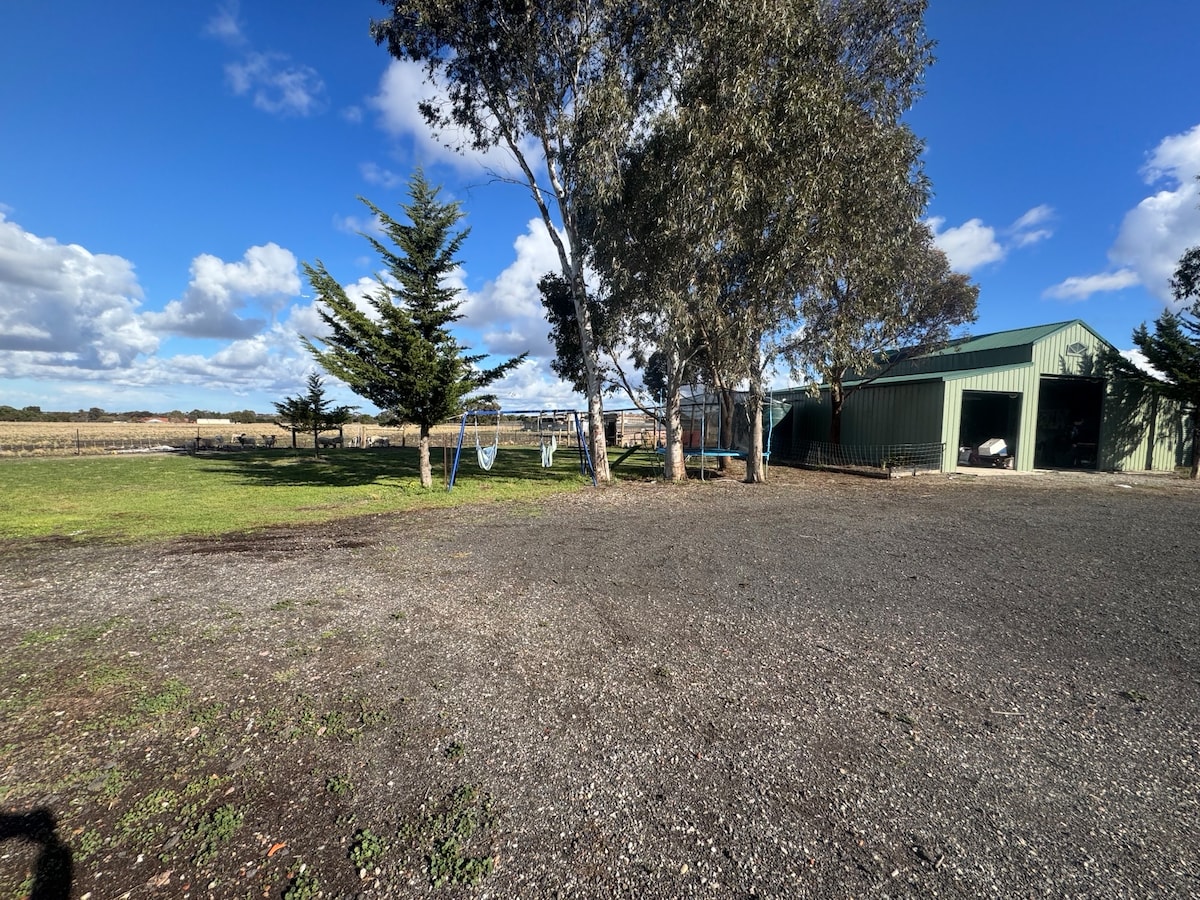 Indlwana iyindawo yokuvakasha ethokomele enamakamelo angu-2 kumahektare angu-15 anokuthula — ilungele imibhangqwana, imindeni, noma amaqembu amancane afuna indawo yokuphumula yasemaphandleni. Imizuzu engu-40 nje ukusuka e-Melbourne, jabulela umoya ohlanzekile, izindawo zezivini, nezilwane zasepulazini ezinobungane. Ngaphakathi, uzothola ikhishi eligcwele, i-heater yamapulangwe, i-aircon/ukufudumeza kuwo wonke amagumbi, ama-smart TV ane-Netflix, i-WiFi, nendawo yokuphumula evulekile. Izingane zizothanda inkundla yokudlala, amabhayisikili, nobumnandi bangaphandle.