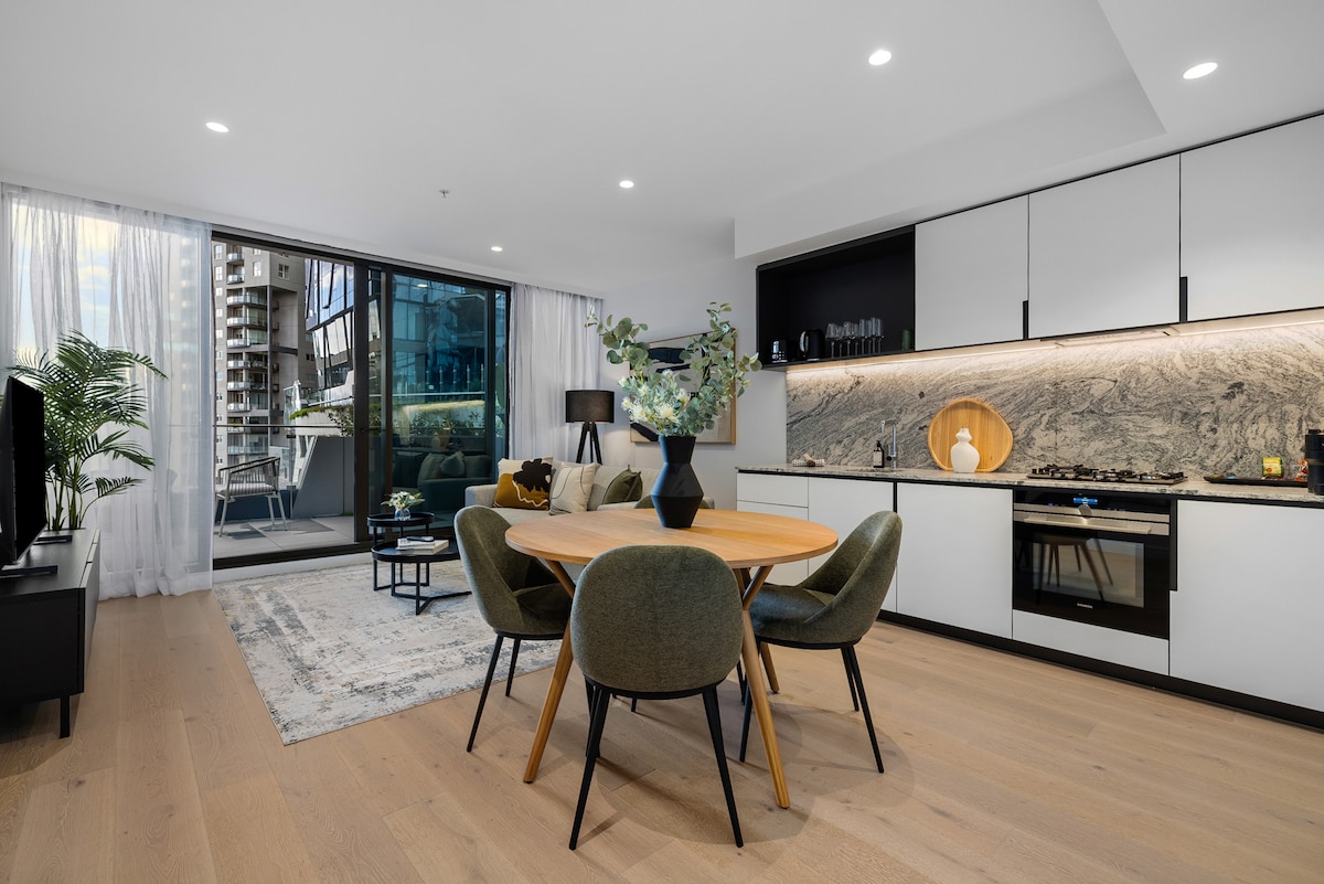 Thatha kalula kule ndawo yokuvakasha eyingqayizivele nezolile edolobheni lase-Melbourne! Jabulela isiphuzo engadini yasebusika ubuka izindawo ezimangalisayo zokuphila ezihamba eHarbour. Kuhle kakhulu kumculi/umthwebuli wezithombe kuwe! Eduze nesevisi yamahhala yetram, Isikhungo sokuthenga seSifunda kuhlanganise nendawo yokupaka izimoto yamahhala, i-Marvel Stadium kanye nesikhungo se-Olympic Ice Skating. Jabulela indawo yokubhukuda ne-spa ngaphansi kwezinkanyezi. Uzojabula kakhulu ukuthi ukhethe le ndawo emangalisayo ukwenza izinkumbulo ezinhle nalabo obathandayo.