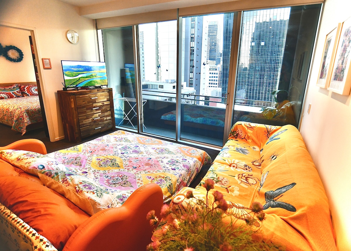 Jabulela okokuzithokozisa okusesitayeleni kule ndawo emaphakathi nendawo. Isikhumulosezindiza- > I-Southern Cross Station -> Ngaphesheya komgwaqo -> Ifulethi I-2mins Supermarket / Ingadi ye-Flagstaff 10mins Hamba uye e-Marvel Stadium / Queen VIC Market / Dockland / Sealife 15mins ukuhamba ku-Crown Casino / Yarra River / Flinders St / Federation Square Amasevisi amahhala efulethini -indoor/ukudla kwangaphandle -Library -Swimming pool -Sunbath -Wet and dry Sauna -Ikamelo le-Yoga - Indawo yomlilo -Izindawo zokuqoqa njll.