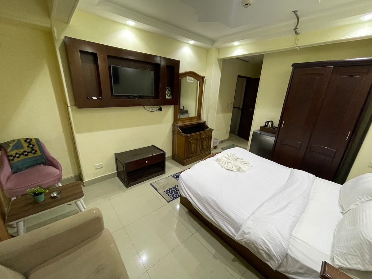 Igumbi eliphezulu elinamakamelo amabili axhunyiwe anegumbi lokugezela eliphrayivethi. I-SPA esesitezi SESI-6. Isakhiwo esifanayo Jabulela izitolo nezindawo zokudlela ezithandwayo kule ndawo enhle yokuhlala imizuzu yokuhamba ngezinyawo ngenkathi uhlala enkabeni yemigwaqo ye-cairo endaweni enhle futhi ube nazo zonke izici & amasevisi asehhotela anenani eliphansi kunawo wonke endaweni ezungezile. Khetha ikamelo lakho ku-a-lot. Ungaba negumbi lenkosi noma igumbi lemibhede emibili elinegumbi lokugezela eliphrayivethi ne-wifi & ukuhlanza indlu & isevisi yegumbi & ideski langaphambili 24/7 konke ukuvikeleka okukhulu.
