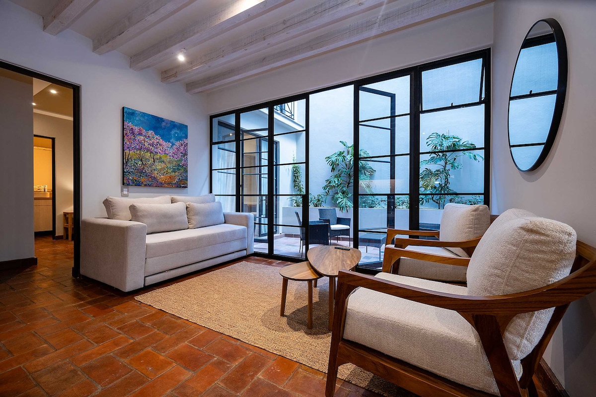 Espacio privado, suit bathroom. Amplia inmaculada, perfectamente sanitizada, con mucha luz natural ! Perfecta ubicación en la Zona Centro, cerca de restaurantes, galerías, tiendas y más ! Está a solo 5 minutos caminando del Jardín principal ! Estacionamiento público a un minuto con tarifa accesible o espacios seguros para estacionarse en la calle. Es perfecto para personas solteras, parejas, familias, grupos y aventureros. Reserva 3 noches y la cuarta será de cortesía ! Consulta previa.