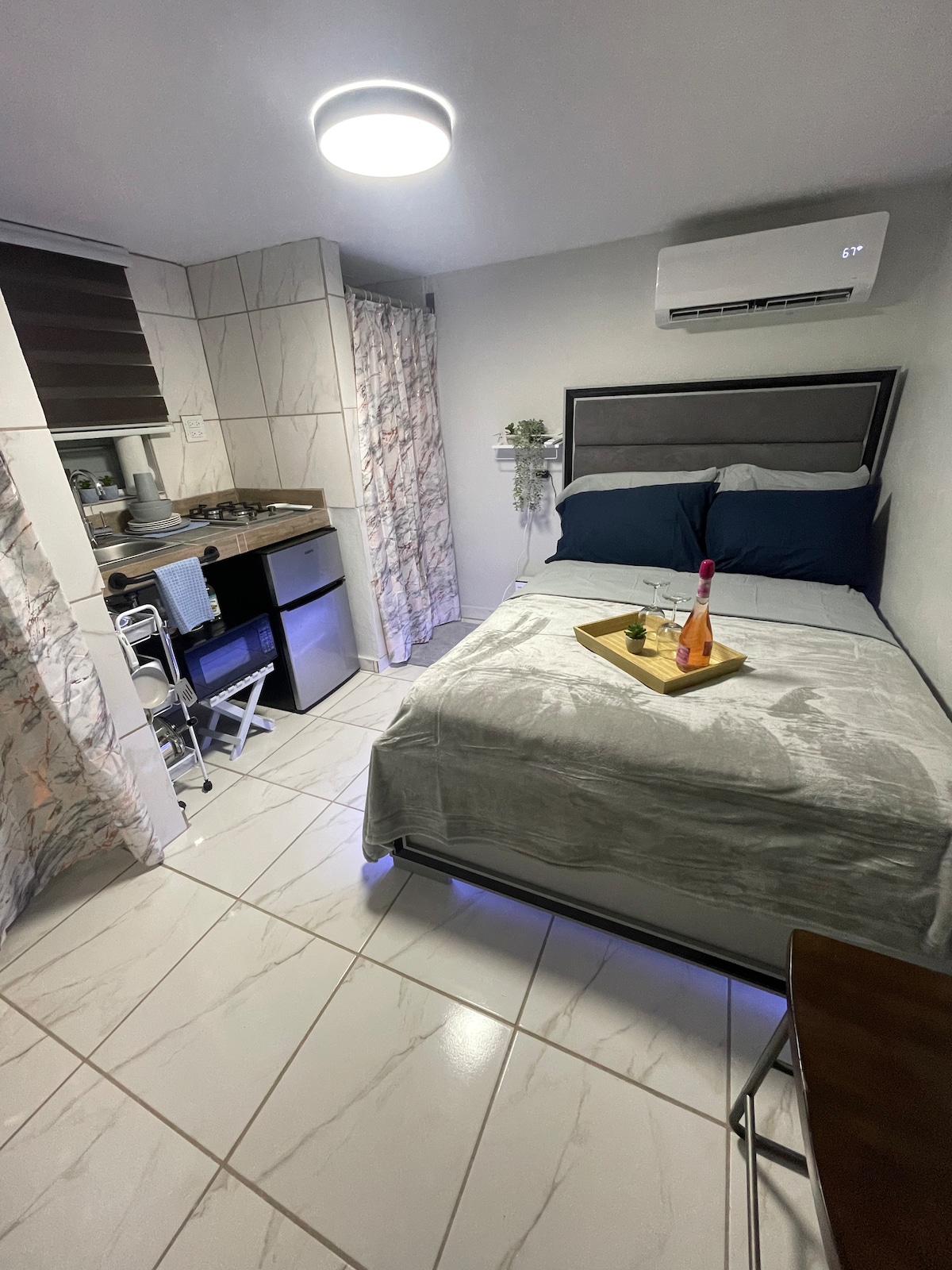 Disfruta de una experiencia con estilo en este alojamiento céntrico.Completamente remodelado con elegancia , estacionamiento privado a minutos de las playas , restaurantes, supermercado, farmacias. A minutos de utuado lago dos bocas, la cueva del indio en Arecibo . A 10 minutos del faro de Arecibo.El apartamento esta equipado con todo lo necesario . Cuenta cama king , sofá cama , WI FI con TV en la sala comedor amplio y cómodo , Cosina con estufa , nevera ,tostadora, aire acondicionado