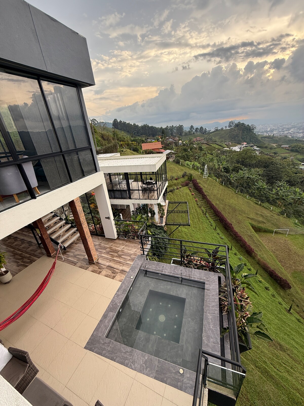 Ngena kokokuzithokozisa okukhethekile nokujulile e-Casa Río, i-villa yesimanje emiswe ngaphezu kwentaba, lapho idizayini nemvelo kuhlangana khona kalula. Indawo esemqoka maphakathi neSifunda Sekhofi. - Imizuzu engu-22 ukuya e-International Airport - Imizuzu engu-20 ukuya e-Expofuturo - Imizuzu engu-22 ukuya e-Ummari - Imizuzu engu-25 ukuya e-Cerritos del Mar Mall - Imizuzu engu-44-57 ukuya e-Finlandia/Salento-Valle del Cocora - Imizuzu engu-55 ukuya e-Panaca - Ihora elilodwa ukuya e-Coffee Park