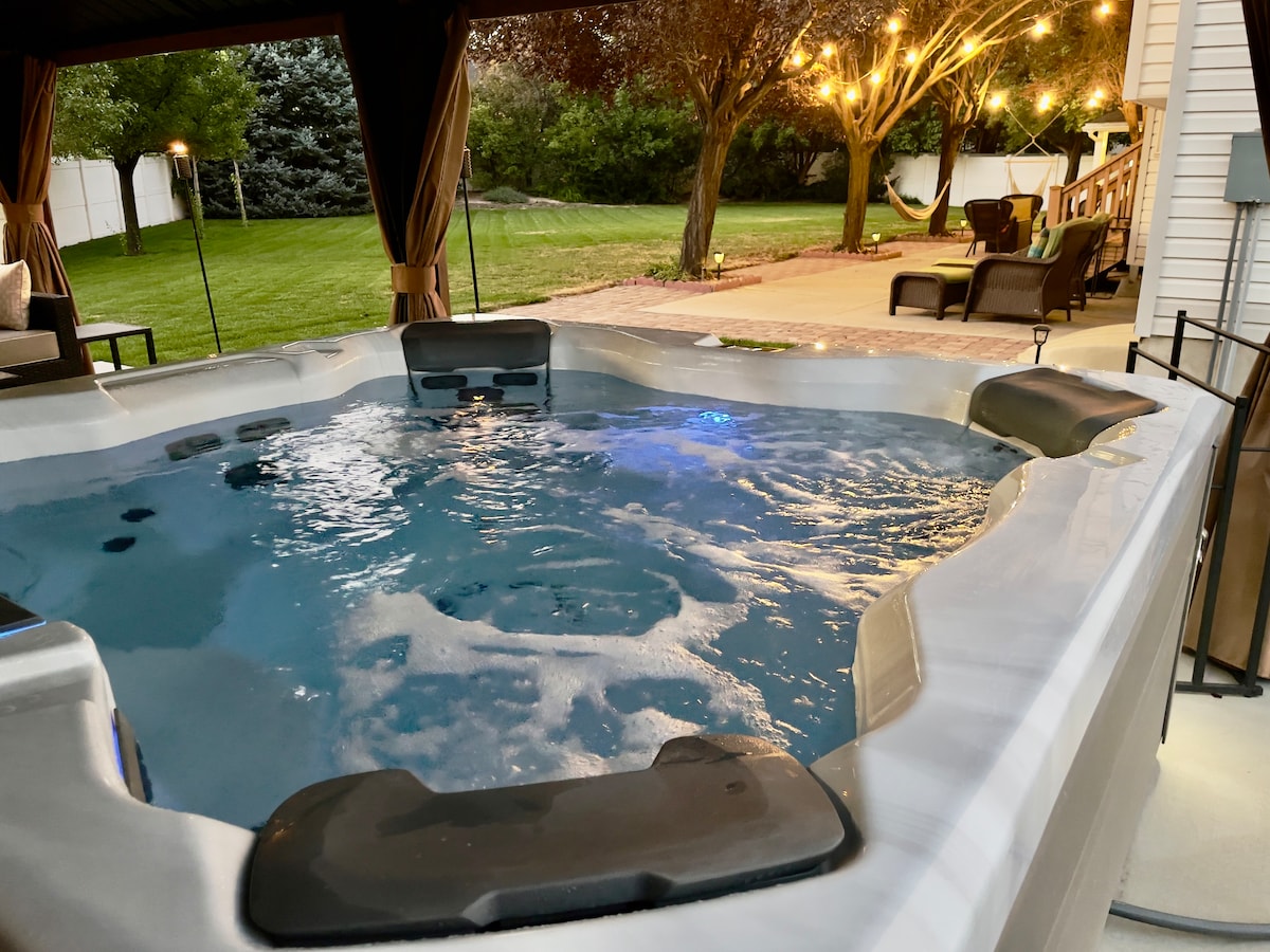 Lena yindawo yokuhlanganisa umndeni. Ukungcebeleka egumbini lokuphumula/ekhishini elikhulu, ubusuku bama-movie ku-82 " 4K TV, ubusuku obupholile basehlobo emphemeni nezindawo ezinhle zedolobha, ubhavu WAMANZI ASHISAYO ohlanganyelwayo nokunye okuningi! Asizange songe izindleko ekwenzeni lokhu kube indawo ethokomele, ekhethwe kahle endaweni, futhi siyajabula ukukubungaza lapha e-Draper enhle! Imizuzu engu-4 kuphela ukusuka emgwaqweni omkhulu nezindawo eziningi eziyingqayizivele eziseduze, unyaka wonke!