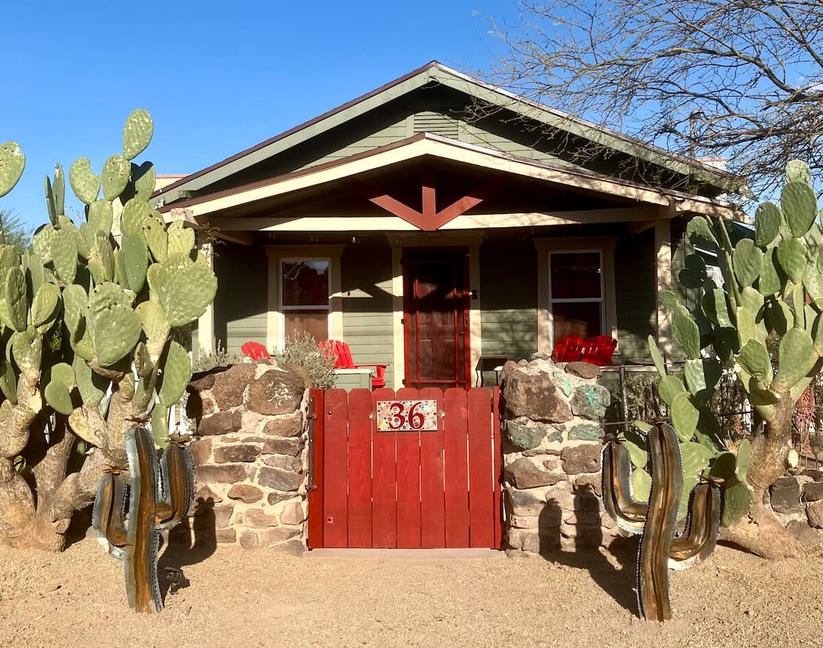 Welcome to Casa Clemente ✨ A historic 3-bedroom gem in Central Tucson where old-world charm meets modern comfort. Relax in the inviting living room, cozy reading nook, or spa-style rain shower. The kitchen, with its 75-year-old beams, is fully equipped with a coffee bar. Three spacious bedrooms ensure comfort for families or groups. Step outside to your private oasis with a BBQ, fire pit, and gazebo. All just minutes from Downtown, Sabino Canyon, U of A, Reid Park Zoo & the Gem Show.