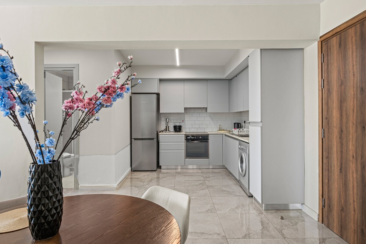 Welcome to our Chic & Modern 1-Bedroom Apartment! This brand-new, tastefully designed apartment offers a cozy and elegant home away from home in a quiet neighborhood, just minutes drive from downtown Larnaca and within walking distance to the beach. Enjoy the comfort of a stylish living area and unwind on the private balcony with lovely side views of the sea - perfect for a morning coffee or a relaxing evening. Ideal for both short getaways and extended stays.