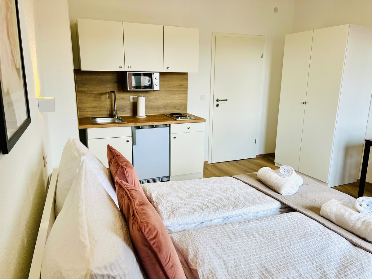 Amafulethi E-SECRET HIDEAWAYS Indawo yakho ekahle yokuhlala enkabeni yeDuisburg futhi ingamamitha angu-450 kuphela ukuya eNyuvesi yaseDuisburg! Ifulethi lethu elithi cozySTUDIO 1.0 likunikeza indawo ekahle yohambo lwakho lwebhizinisi, ukuvakashela umbukiso wezohwebo wase-Düsseldorf noma i-International Garden Exhibition IGA 2027. ▪️ Uhambo olufushane nohambo lwebhizinisi ▪️ Izithuthi zomphakathi ▪️ Umbhede omkhulu ▪️ I-SmartTV | I-ALEXA | I-WiFi ▪️ indawo yokupaka yamahhala ▪️ Ukuzingenela ▪️ Izilwane ezifuywayo zamukelekile Ufuna amakhaya amaningi? Sibuze futhi sizokusiza!