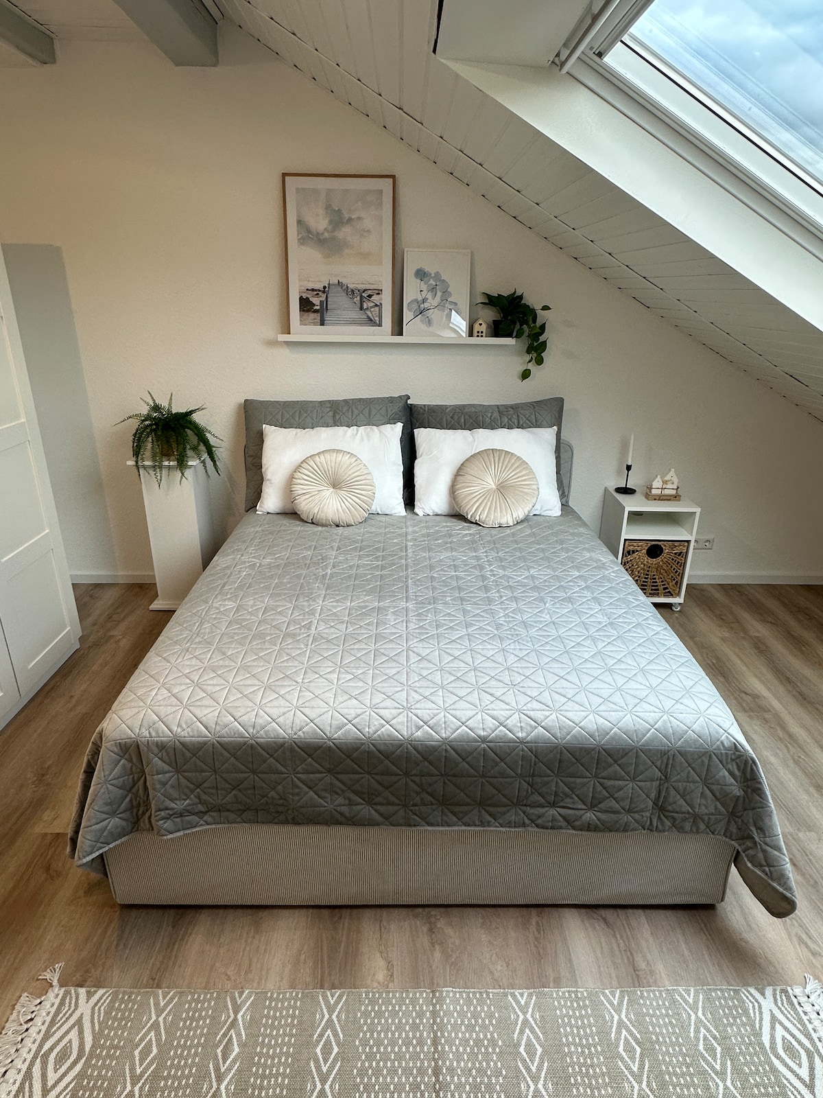 Herzlich willkommen:) Ruhig gelegen und dennoch nur etwa 15 Autominuten von der Karlsruher Innenstadt entfernt ist dieses gemütliche und dennoch geschmackvoll eingerichtete Apartment perfekt für alle, die auf nichts verzichten möchten. Nutzt die großzügig ausgestattete Küche zum ausgefallenen Kochen, schlaft euch mal so richtig aus in dem 180x200cm großen Bett oder startet von der Wohnung aus in ein Abenteuer in das grüne Karlsruher Umland bzw. begebt euch mitten rein in das städtische Treiben.