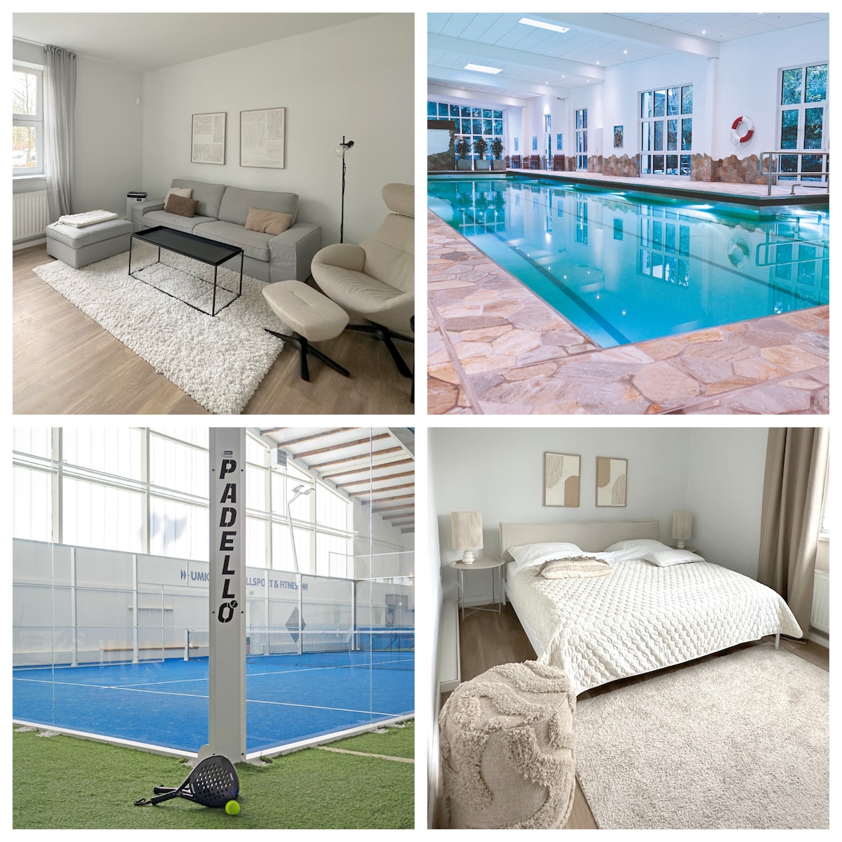 Sinefulethi elingu-110 sqm endlini yethu elinabantu abangu-4. Kukhona i-LCD TV engamasentimitha angu-50 enokungena KU-NETFLIX ne-Amazon egumbini lokuphumula nasemakamelweni okulala womabili. Amakamelo okulala amabili avuleke kakhulu futhi igumbi lokugezela elikhulu eline-shower nalo alishiyi lutho olufiselekayo. Ukusetshenziswa kwendawo yethu yokubhukuda (6 a.m. - 9 p.m.) kungenzeka kanye nathi ekuseni ngesidlo sasekuseni. Bobabili bafakiwe enanini. I-sauna iyindawo ephrayivethi futhi ibiza u- € 15 emahoreni angu-3 nomuntu