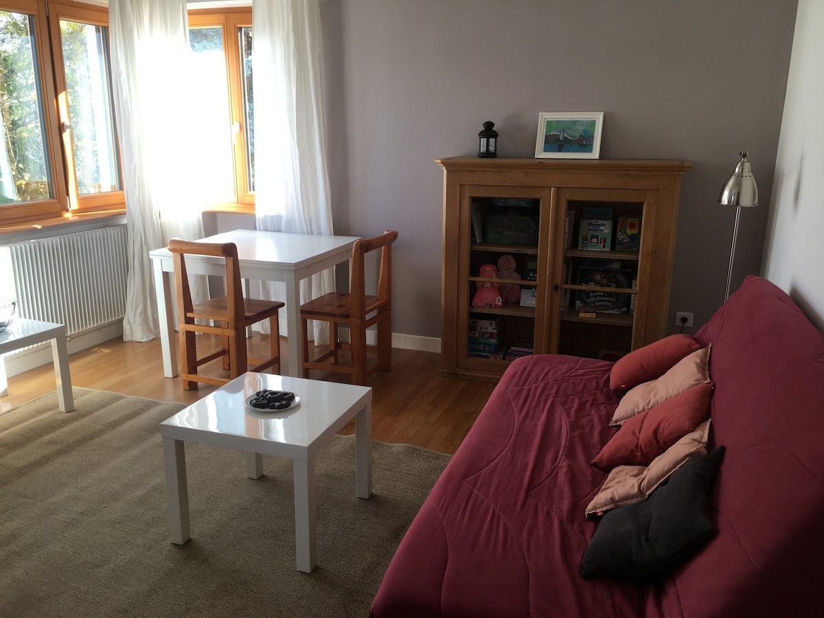 Ikamelo elilodwa efulethini elingu-35 m2 lihlukaniswe ngezinkanyezi ezingu-3 lilungiswe ngokuphelele nge-balcony, esesitezi esiphansi sendlu eseceleni. Ifinyeleleka kalula esikhumulweni sezindiza sase-Strasbourg Entzheim futhi iseduze nenethiwekhi yomgwaqo, ingahlalisa abantu abangu-2. Inekhishi elinakho konke, ikamelo lokulala eline-TV, indawo yokusebenzela ene-Wifi, igumbi lokugezela eline-shower nethoyilethi. I-Cot nesihlalo esiphakeme siyatholakala. Izintaba ezinhle zasehlobo / zasebusika. Ipaki yezimoto.