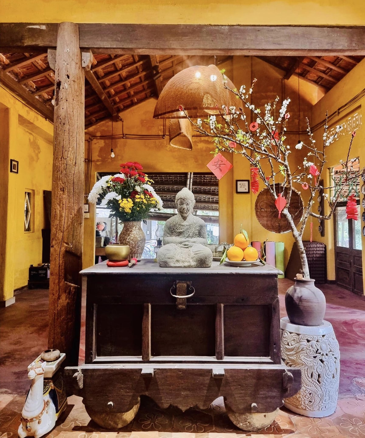 Không gian rộng rãi và thanh bình này sẽ khiến bạn quên đi những âu lo. Khi bạn lưu trú tại đây bạn sẽ được trải nghiệm các lớp tập yoga, vẽ tranh mandala, ngắm toàn cảnh yên bình trên sân thượng với 360 độ. Ngoài ra, bạn có thể đi xe đạp miễn phí quanh làng và trải nghiệm các ngành nghề truyền thống như dệt chiếu, dệt lưới cá, du ngoạn trên chiếc thuyền thúng trong rừng dừa đẹp mắt Lưu ý: Chúng tôi có một chú chó Beagle, quý vị cân nhắc trong trường hợp quý vị bị dị ứng thú cưng trong nhà.