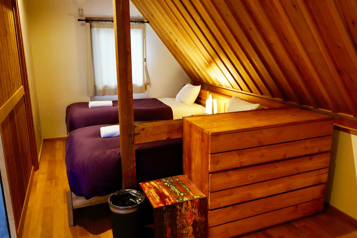 I-CORONAVIRUS Sisebenzisa imithetho yendawo uma isebenza Indlu yeholide eyakhiwe ngokhuni imi engadini yethu, ezungezwe izihlahla endaweni ethulile engamakhilomitha angu-3 ukusuka maphakathi. Iqukethe ikamelo lokulala/ikamelo lokuhlala, ikamelo lokugqoka, negumbi lokugezela elihlukile. Inethezeke ngokwedlulele, inefenisha enhle futhi ifanele abantu abashadile. Alikho ikhishi elinjalo, i-lodge ayinayo i-induction cooker, i-microwave, i-rice boiler, iketela likagesi, i-toaster, ngakho-ke ukupheka ngokwakho kuyenzeka.
