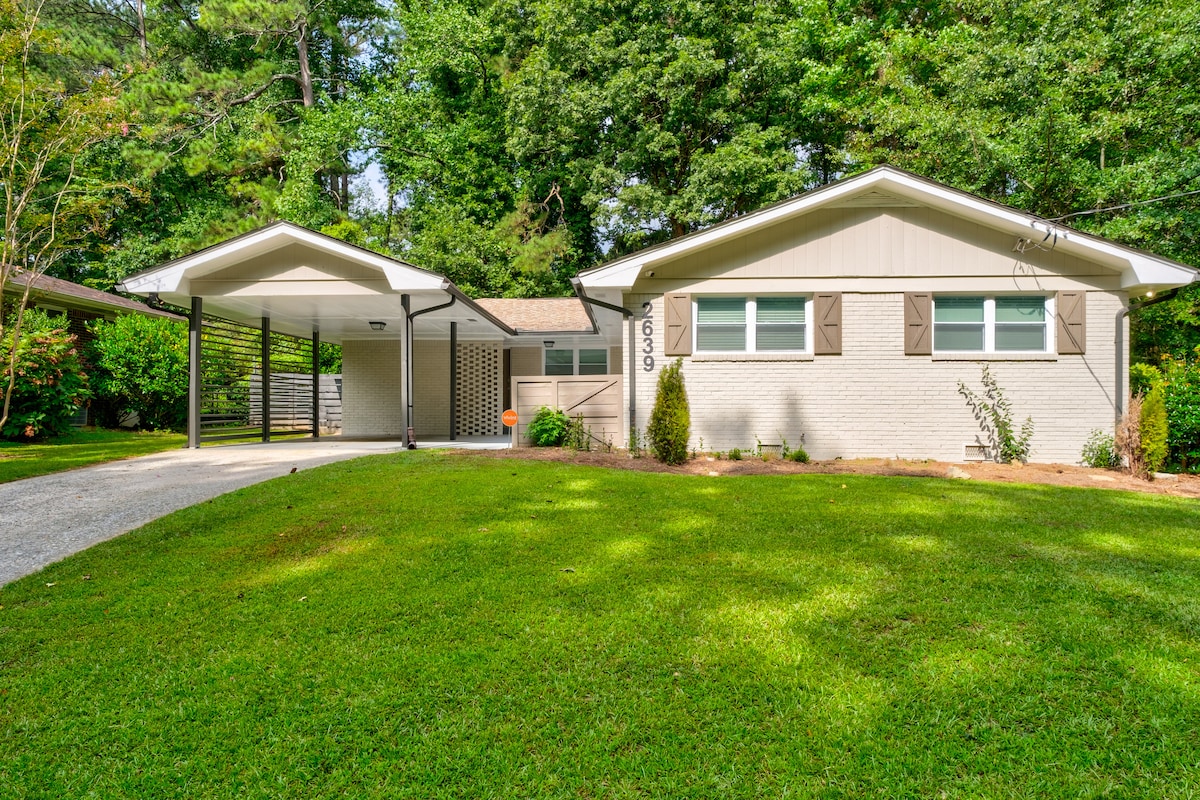 Le-bungalow entsha ekhangayo, enamandla, yesimanje ihlezi emizuzwini yomphakathi emaphakathi, eyingqayizivele ukusuka esikhumulweni sezindiza, e-Downtown Atlanta, e-Marta, e-Tyler Perry kuma-studio amafilimu nokunye. Leli khaya linamakamelo okulala angu-3 namagumbi okugezela angu-2, alungele iholide lakho elilandelayo lomndeni, impelasonto yokuvakasha yabangane, noma uhambo lomsebenzi. Jabulela ama-bar endawo, izindawo zokudlela namabhikawozi kule ndawo ethrendayo. Eminye imisebenzi ihlanganisa i-Beltline, i-Sumner & Sykes Park, ne-Velodrome Park. Ukunethezeka kwangempela nokunethezeka kungcono kakhulu!