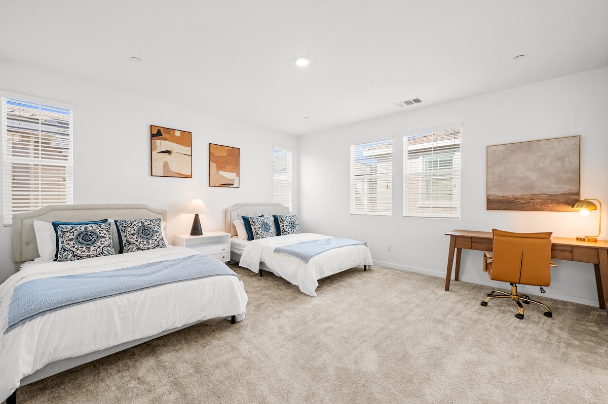 Inhlanganisela yokuhlala emaphandleni nasemadolobheni!! Ikhaya elitholakala kalula eDolobheni lase-Jurupa Valley. Imizuzu engu-15 ukusuka e-Ontario International Airport, e-UCR, e-Victoria Gardens, nasezikhungweni zemihlangano. Ukufinyelela okulula emigwaqweni emikhulu engu-60 no-15. Ikhaya lesimanje, eliqokiwe, nelithuthukisiwe phakathi nekhilomitha ukusuka ezinkundleni zegalofu, izitolo zokudla, izikhungo zezitolo, izindawo zokudlela nemizila yamahhashi. Indawo ye-premium e-Socal: imizuzu engu-50-60 ukuya e-Disneyland, e-Palm Spring, e-Newport Beach, e-Los Angeles, e-Morongo, nemizuzu engu-90 ukuya e-Universal Studios.