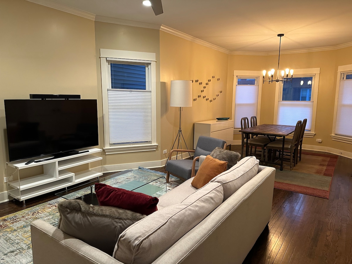 Ifulethi elivulekile, elinelanga elinekamelo elilodwa endaweni enokuthula, enomlando wase-Chicago. Ukubuka ipaki futhi kuwukuhamba okufushane ukusuka e-Thorndale Red Line "esiteshini, ebhishi, i- Whole Foods, nezitolo, izindawo zokudlela, namabha e-Andersonville. Ilungele abantu abangaba ngu-4, inombhede omkhulu ekamelweni lokulala nesofa yokulala egumbini lokuphumula. Ikhishi linesitofu segesi, i-microwave, ifriji, umshini wekhofi, nezitsha. I-WiFi yejubane eliphezulu yamahhala. I-Smart TV. Ihlanzekile futhi ikhululekile ngokuthinta kwesimanje.