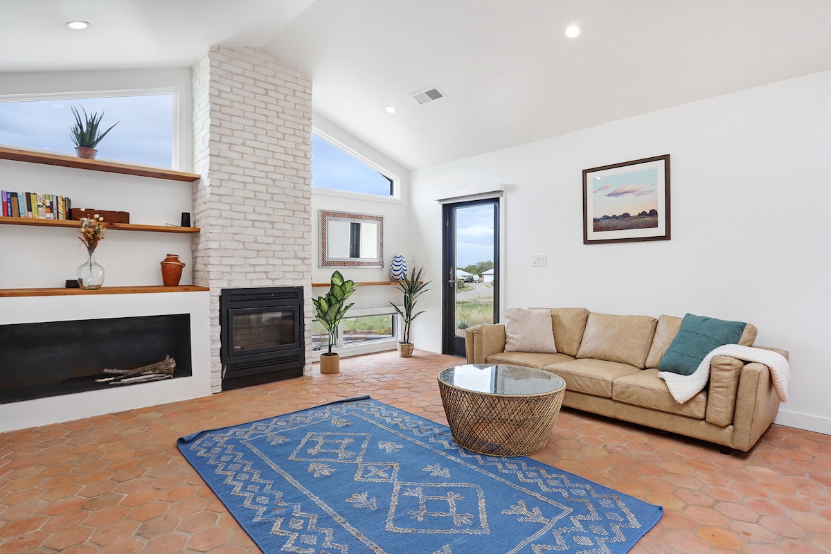 Phumula futhi uphumule emaphandleni e-Hat Ranch Gallery Compound. Leli khaya elisogwadule eliklanywe kahle linezindawo ezinhle zogwadule nezintaba. Zithokomele eduze nesitofu sokhuni phakathi nobusika ngenkathi udweba noma usonga ku-hammock ukuze ubuke izinkanyezi unyaka wonke uthole ugqozi lokusebenzela inoveli yakho. Le ndawo enhle nenobuciko inokuthula nokuthula, kodwa usemizuzwini engu-20 ukusuka edolobheni elidumile lase-Santa Fe. Le adobe Casita iwukuzithokozisa kwangempela kwase-Santa Fe. Akungabazeki ngakho.