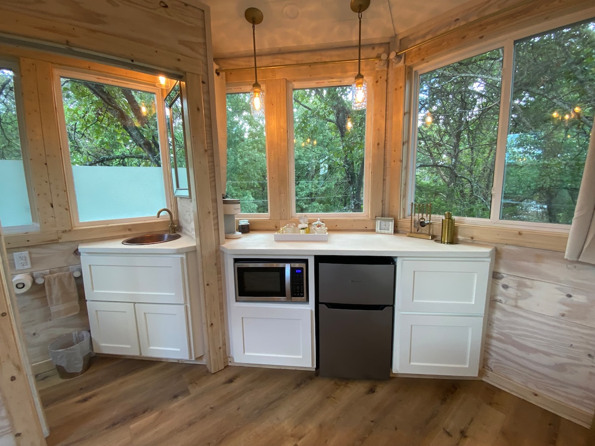 Le ndlu eyakhiwe esihlahleni kanokusho, eyakhiwe ngamahektare angu-5 asemaphandleni anamapulangwe, iyindawo ekahle kakhulu yokuphumula, ukuvuselela, nokuvuselela, futhi itholakala emahoreni angu-1.5 empumalanga ye-Dallas phakathi kwamachibi amabili. Kungakhathaliseki ukuthi uphumule ku-cubby enhle yombhede osayizi wenkosi, uhlezi ngo-8' ngaphezu kwephansi lehlathi elizungezwe imicamelo nezingubo zokulala emphemeni omkhulu we-hammock ongu-6' x 12', noma ukugeza noma ishawa yemvula emphemeni wobhavu ovalekile, le ndlu eyakhiwe esihlahleni yothando yilapho ukunethezeka nokunethezeka kuhlangana khona nobumnandi namaphupho.