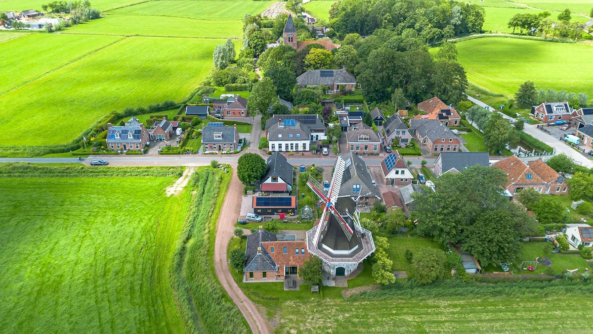 Ifulethi elizimele elizimele endaweni ethulile yasemaphandleni engemuva kwePulazi enendawo yokupaka yamahhala yokungena ephrayivethi NE-WIFI namagumbi okugezela angu-2, izindlu zangasese ezingu-2. Izindawo zezivakashi ezingaba ngu-12. Amakamelo okulala angu-4 nekhishi elikhulu elinakho konke. Indawo eningi ngaphandle enetafula elingaphandle ne-BBQ. Amakhilomitha angu-17 kuphela ukusuka e-Groningen city-centre. Amalungiselelo okuhlala isikhathi eside ama-expats/izisebenzi uma zicelwa.