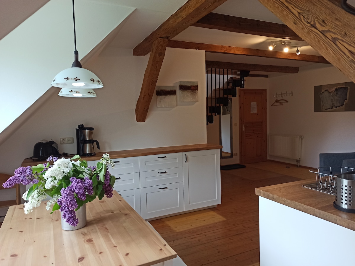 Siyakwamukela edolobhaneni elizolile lase-Wietstock. Ifulethi lisendlini yezitini elungiswe ngokucacile egcekeni lethu elivulekile elinezihlahla ezindala. Inendawo yokungena eseceleni, ingadi yangasese nendawo enhle yokuhlala ngemuva kwendlu. Ifenisha ethandekayo, ilungele ukuphumula nokuphumula noma ukusebenza kunoma iyiphi inkathi. Isiqalo esikahle sokuqwala izintaba nokugibela amabhayisikili endaweni noma uhambo oluya ku-Cromom.