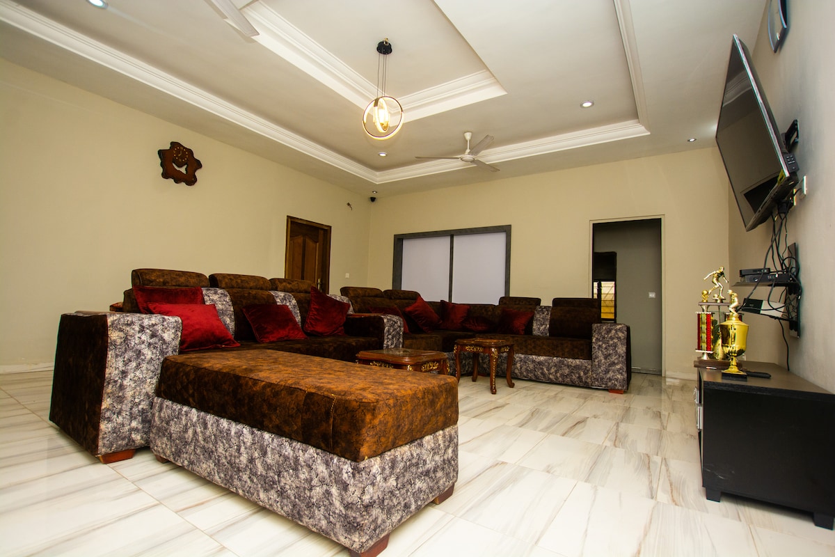 Zithokozise ngesibonelo sokunethezeka nesitayela endlini yethu enhle enamakamelo angu-13. Le ndawo yokuhlala akuyona nje indawo yokuhlala; iyisipiliyoni esenzelwe labo abakwazisayo izinto ezinhle ekuphileni. Amasevisi e-Galore:Jabulela ukunethezeka ngendawo yokubhukuda yangasese. i-air conditioning. Jabulela ukuthula kwengqondo ngothango lukagesi namakhamera ezokuvikeleka asezingeni eliphezulu aqaphe indlu yakho. Ikhaya lethu line-alamu yesimoko ukuze kuqinisekiswe inhlalakahle yakho. ikhishi eliphelele. Phumula ngaphansi kwezinkanyezi ophahleni lwethu