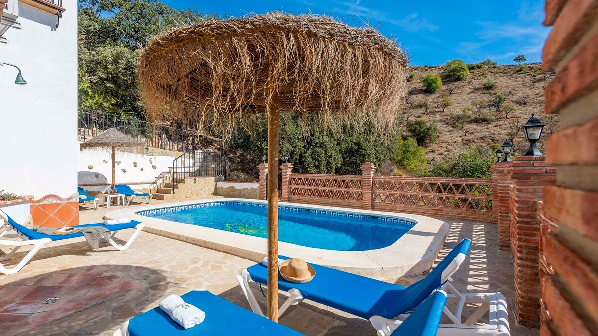 Indlu encane yasemaphandleni ezimele ngesitayela sase-Andalusia epulazini lomnqumo, amamitha angu-100 ukusuka endlini yabanikazi. Indlu ihlelwe yaba istudiyo esikhulu esinegumbi lokugezela elihlukile nekhishi elinakho konke, elinethala elikhulu eliphrayivethi elinezihlalo zamadekhi nendawo yokosa inyama. I-finca yethu ineyunithi eyodwa kuphela yokuqasha: ngakho-ke ukusetshenziswa kwendawo yokubhukuda kugcinelwe izivakashi kuphela. Sinezinja ezihlala egcekeni futhi ziyazithanda izinja zethu: ngakho-ke kubalulekile ukuthanda izinja nazo! Zilala ngaphakathi kwendlu yomnikazi.