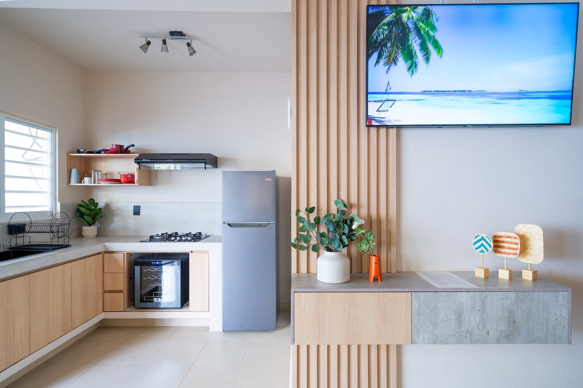 Cabanga ngokuvula umnyango we-villa entsha e-Manzanillo, E-VILLA GADI. Ubukhazikhazi nobuqiniso bukumboza. Yonke imininingwane, kusukela ekuhlobiseni kwesimanje kuya kumklamo, ikumema ukuba uphumule. Uyaphola endaweni yokubhukuda encane, ujabulele ukushona kwelanga e-Roof Garden, futhi ulungiselele isidlo sakusihlwa e-Pizza Oven noma e-Charcoal Grill. Uhamba emabhayisikobho, ujabulela umoya. Amakamelo okulala angu-3 anomoya oshisayo anemibhede ethokomele akulindele ukuba uphumule kahle. Ibhishi, eliqhele ngemizuzu engu-10-15, likushayela ucingo 🌴🌊🌞