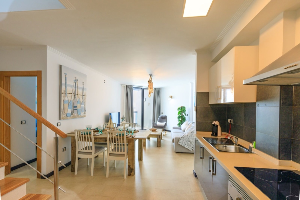 Thola isikhathi sokuzola nomlingo wokuzizwa ulwandle lufana nesikebhe, uzomangala ubheke iziqhingi (i-Losbos ne-Lanzarote) kule penthouse. Itholakala kahle kakhulu edolobhaneni lase-Corralejo, amamitha ambalwa ukusuka e-Marina enikeza uhambo oluhlukahlukene kanye nemidlalo yamanzi. Konke okuseduze nokuhamba ngezinyawo: ukudla okumnandi,izitolo, izimakethe ezinkulu, isikhungo sezempilo. Ngizosiza ukwenza ukuhlala kwakho kube mnandi ngangokunokwenzeka ngokusondelana nokuhleleka; ngibheke phambili ekukuboneni!!