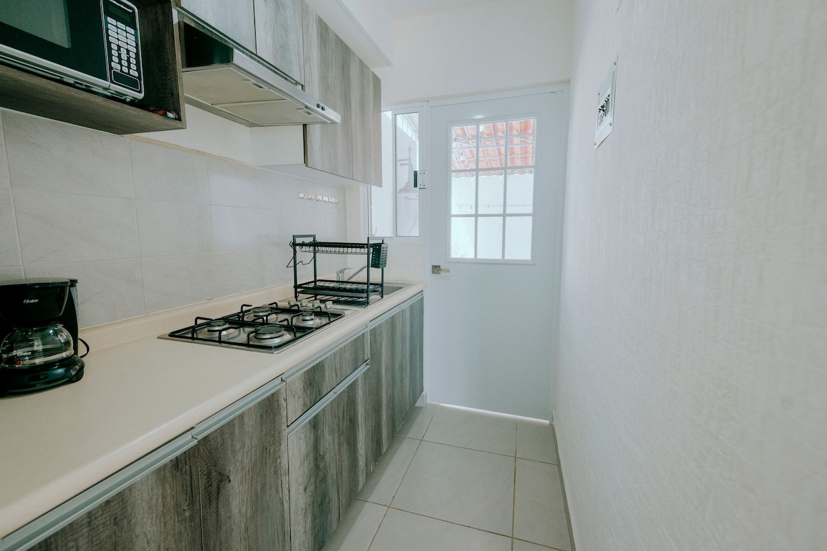 Indlwana esebenzayo, ilungele imibhangqwana. Ukufinyelela okuqondile ECHIBINI; IBHISHI emgwaqweni. Umbhede omkhulu wekamelo elilodwa, i-tv42"ene-A/C, igumbi lokugezela, igumbi lokuphumula negumbi lokudlela labantu abangu-4, ikhishi elinakho konke, ithala elincane nemihlobiso ethokomele. IZINDAWO EZIHLANGANYELWAYO: hlanganyela indawo yokubhukuda enkulu, i-palapa ne-dock nezinye izindlu ezingu-3 endaweni efanayo. I-palapa inegumbi lokuphumula, igumbi lokudlela, nekhishi izivakashi ezingalisebenzisa. Kuhlanganisa indawo yokupaka imoto eyodwa. INANI LIYASHINTSHA uma KUNABANTU abangu-2, abangu-3 noma abangu-4.
