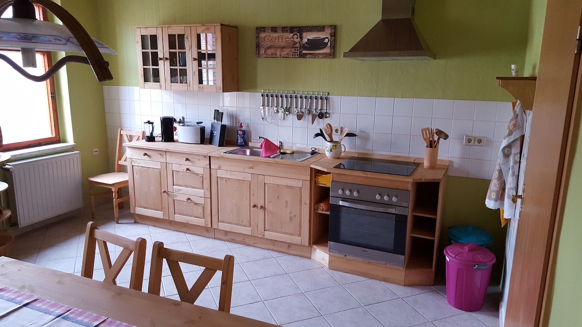 Ukwamukelwa ngemfudumalo ku- "Kurnest" Bad Schmiedeberg. Lawa masevisi akulindile phakathi nokuhlala kwakho: *Umbhede olala abantu ababili onethezekile 160x200 *Indawo yokudlela enetafula elikhulu * igumbi lokugezela lesimanje elinobhavu * ikhishi elinakho konke, elineketela, iphedi - Umshini wekhofi, i-Toaster * Izinto zekhofi netiye *Umshini wokuwasha *I-Wifi, i-TV *igumbi lamabhayisikili+igumbi lokugcina izinto * ukubukeka okuhle kwe-Kurhaus * indawo emaphakathi futhi ethulile * Amathilomu aseduze nendawo yokubhaka Ngilangazelela ukuvakasha kwakho!