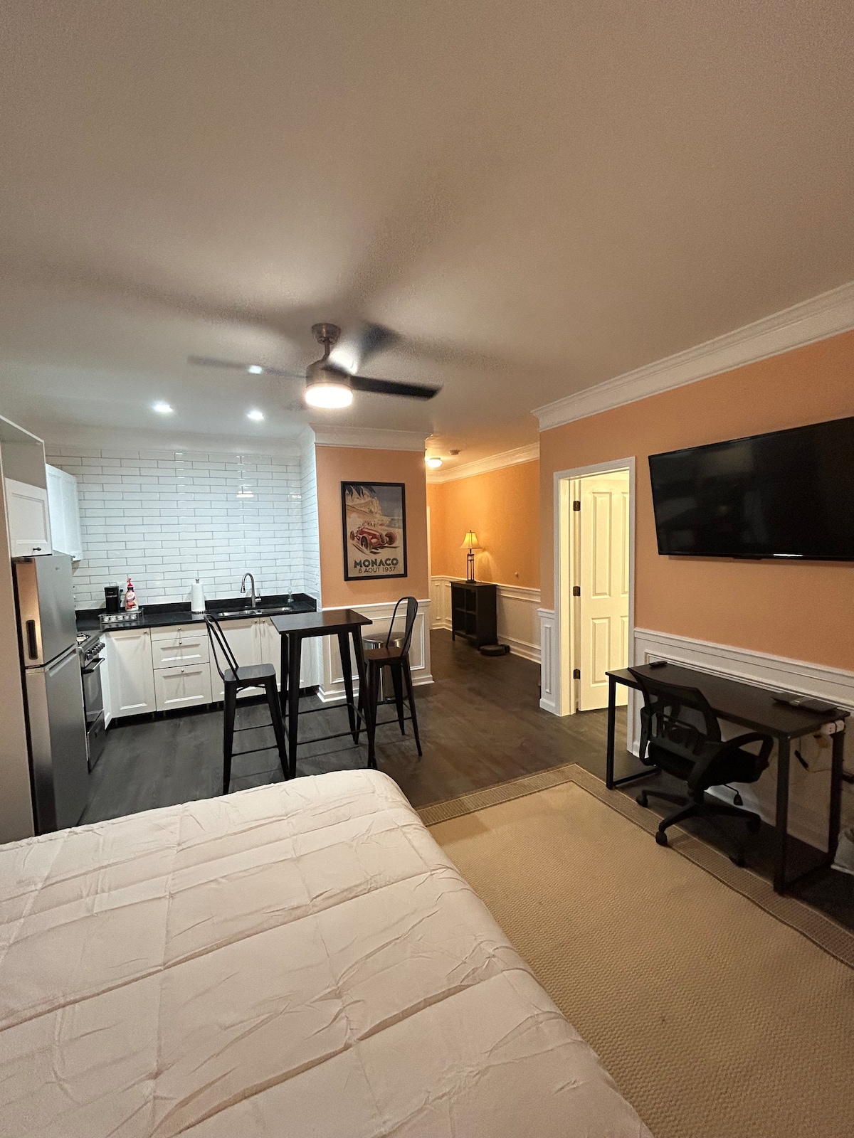 Leli studio elimnandi elithokomele liyimfihlo kakhulu, linendawo yalo yokungena ngakwesokudla sendlu. Ngaphezu kwalokho, inekhishi eliphelele negumbi lokugezela. Yindawo enokuthula, eyimfihlo enekhishi elinakho konke okudingekayo elinefriji enkulu, umbhede omkhulu, i-smart TV engu-45โ, indawo yokungena eyimfihlo, indawo yangaphandle eholela egcekeni elingemuva, nendawo yokupaka eduze kakhulu nendawo. Sisemizuzwini engu-30 kuphela ukuya edolobheni lase-Atlanta, eMercedes-Benz Stadium, e-GA Aquarium, nemizuzu engu-15 e-Gas South Arena.
