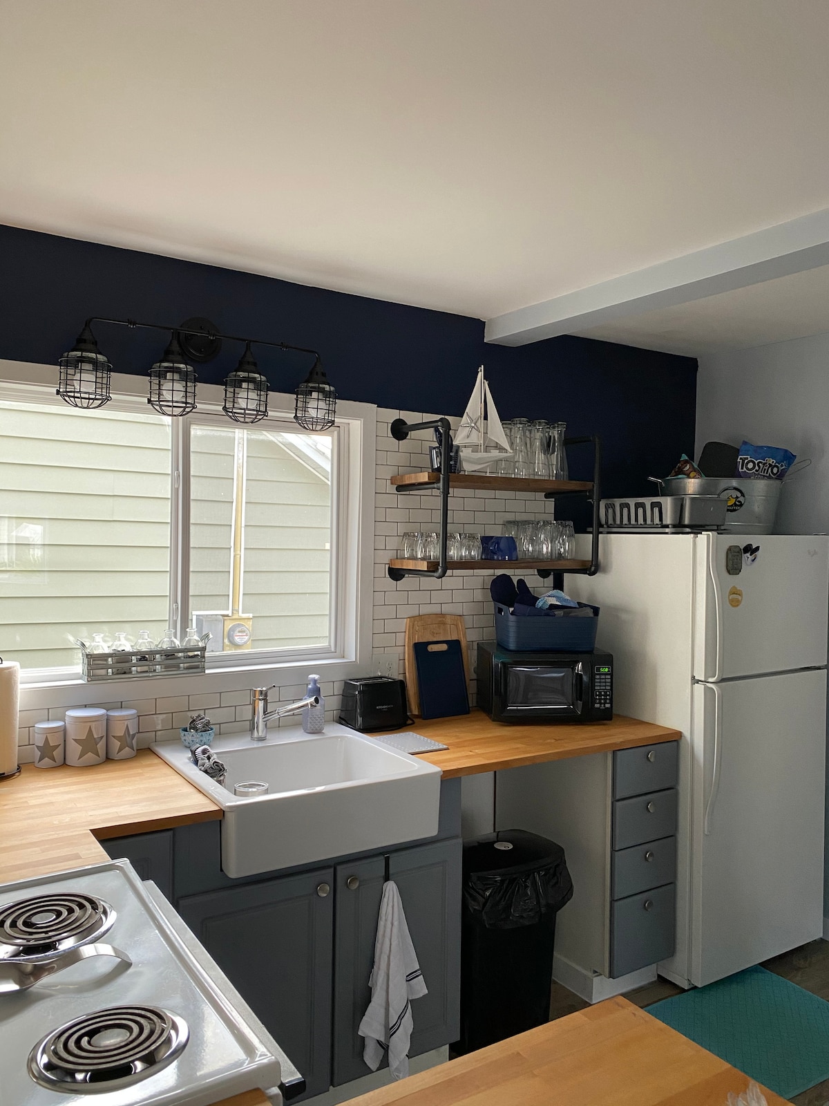 Indlu yamapulangwe enamakamelo okulala amabili etholakala ngaphesheya komgwaqo ukusuka eLake ngase-South Shore. Kunendawo yokubuka ichibi uma usekhadini nangaphakathi. Idokhi yomphakathi isendaweni ephambene nendlu eyakhiwe ngamapulangwe. Wonke amathawula nezinto zombhede zinikeziwe. Ifenisha yedekhi yangaphandle ne-gas grill. Ikamelo elilodwa linombhede omkhulu kanti elesibili linombhede oyi-bunk onebhedi elincane eliphezu kwalo, futhi belinombhede omncane onebhedi elincane elikhuphukayo kuleli kamelo. Kunelofti yokulala enomatilasi ababili abangama-twin futhi.