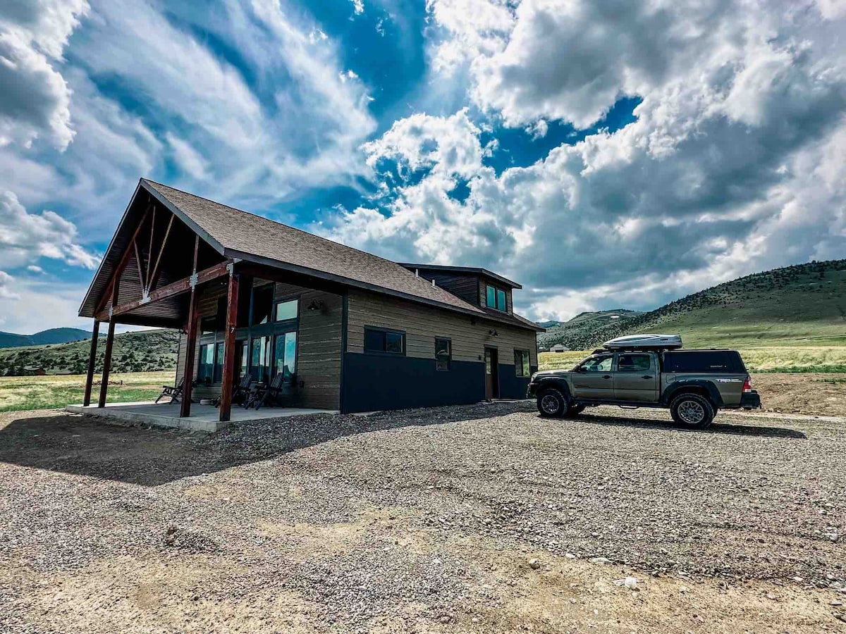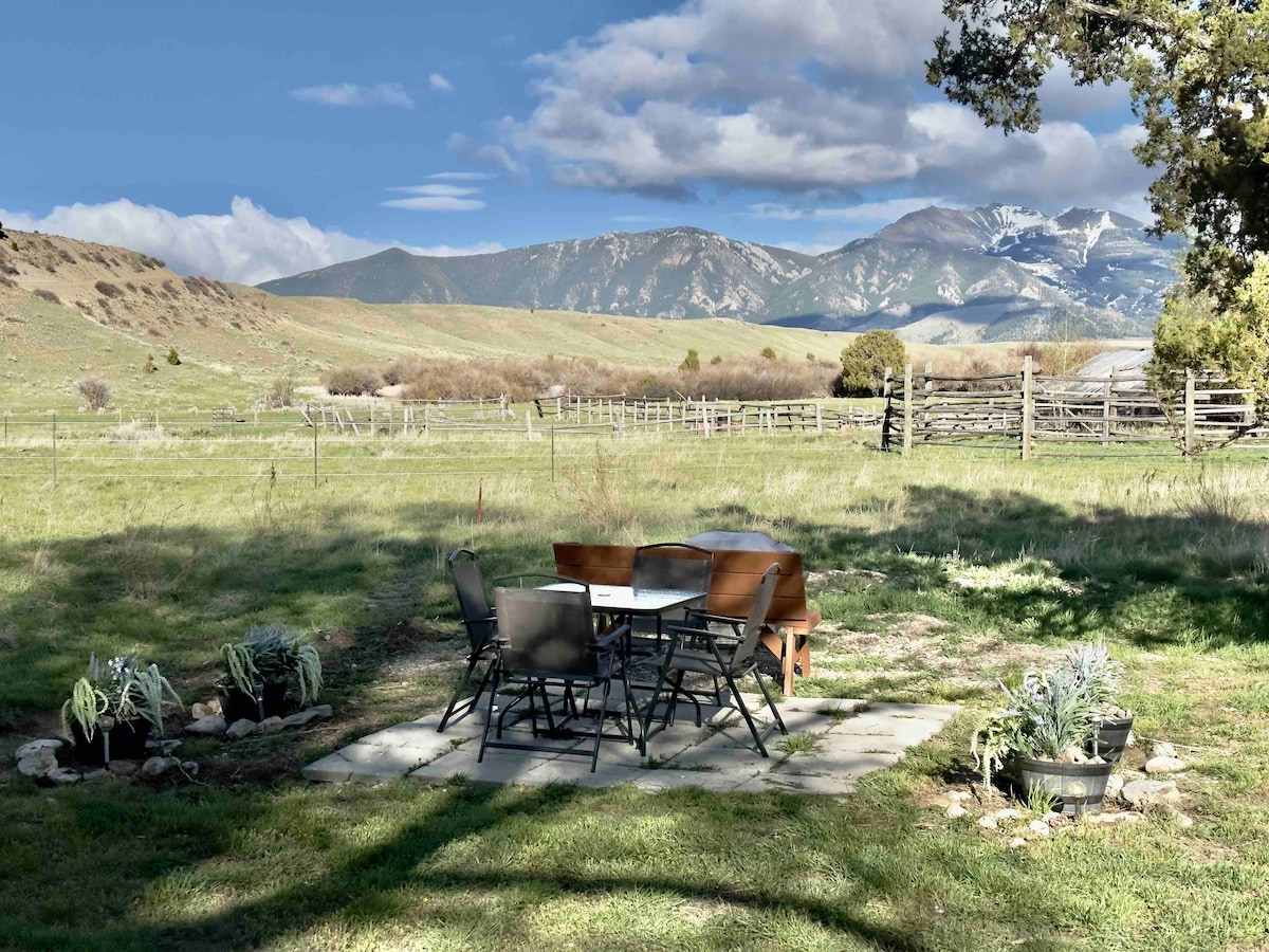 Amaminithi kuphela avela ku- "Blue Ribbon" edumile yokudoba i-Madison River, imizila yokuqwala izintaba, ne-Ennis Lake! Amasayithi aseduze: edolobheni lase-Ennis: amaminithi angu-5; Norris Hot Springs: amaminithi angu-20; Isikhumulo sezindiza sase-Bozeman: i-1 hr; I-Yellowstone National Park: 1hr. Le "Bunkhouse" yangasese futhi engokomlando ingenye yezindlu ezakhiwe ngamapulangwe ezivela emakhaya ngasekupheleni kweminyaka yawo-1800. Epulazini elingama-acre angu-200+ ngaphandle kwesiphithiphithi sedolobha nalapho izilwane zasendle zikhona yonke indawo! Indlu eyakhiwe ngamapulangwe ilungiswe ngokuphelele ngakho konke ukuqedwa okusezingeni eliphezulu namasevisi.