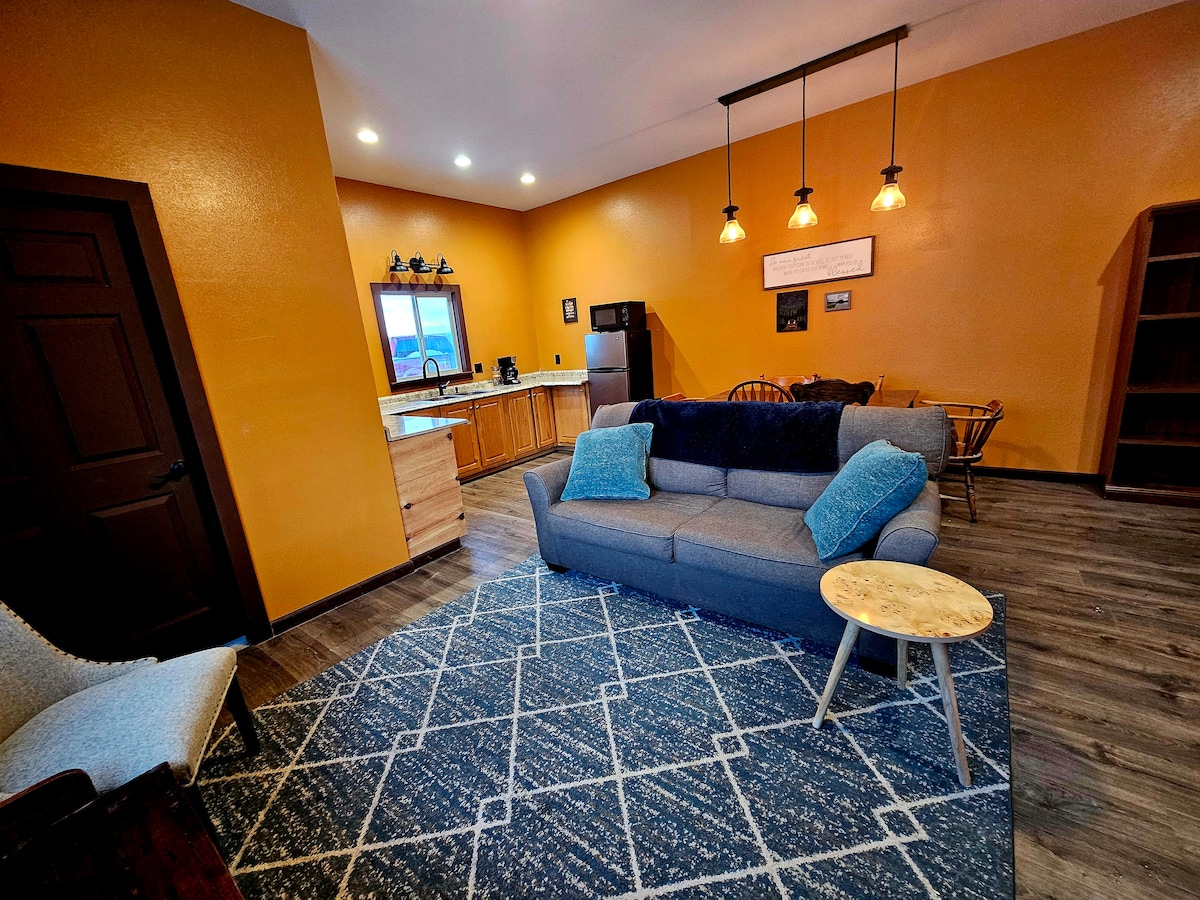 Isanda kwakhiwa, i-675 sq ft Sunrise Silo ilala abantu abangu-4, nombhede oyindlovukazi ku-loft nosofa olele phansi. I-Sunrise Silo iyisibonelo esiyingqayizivele sendlela ubuhle basemaphandleni obuhlanganisa kahle ngayo namasevisi anamuhla nokokuzithokozisa okujabulisayo. Izindawo ezinhle, ezingavinjelwe zezintaba zase-Bridger kanye ne-Gallatin Valley ezungezile zizoqinisekisa ukuthi lokhu kuba yindawo yakho yokuvakasha eyintandokazi yase-Montana. Jabulela indawo yasemaphandleni kuyilapho ukwazi ukuthola kalula amathuba okuzijabulisa nokuzijabulisa.