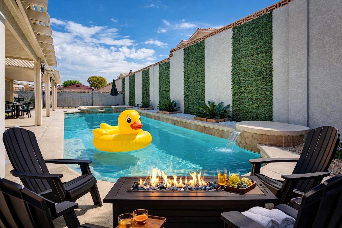 Indlu inalokhu: Indawo yangasemuva eyiphrayivethi enendawo yokubhukuda nobhavu wamanzi ashisayo. Imidlalo yangaphandle: Ping Pong, Connect Four & Corn Hole. fire pit. I-BBQ nendawo yokudlela yangaphandle. I-inthanethi esheshayo. Ikhishi elinakho konke negumbi lelondolo. Hamba ngamashawa & ekamelweni elisezansi. Wonke amakamelo anama-TV anokusakaza kwe-Roku. Indawo ezungeze amadolobha amakhulu ephephile. Itholakala ngamamayela angu-3.9 ukuya esikhumulweni sezindiza, amamayela angu-7 ukusuka e-MGM Grand on The Strip. Imizuzu engu-5 ngemoto eya e-Green Valley Ranch Casino, ukuthenga nezindawo zokudlela! * Indawo yokubhukuda ayishisi. Ubhavu wamanzi ashisayo ufudunyezwe unyaka wonke!