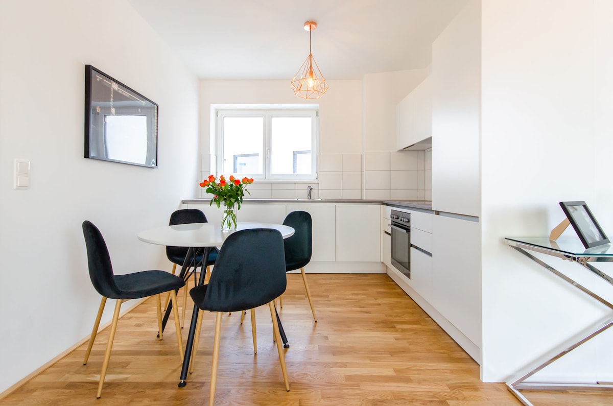 Ngena ekunethezekeni kwefulethi lakho elisesitayeleni, elinophahla elangeni, elinezindawo ezivelele maphakathi ne-Vienna. Izinyathelo ezimbalwa nje kude ne-Radetzkyplatz & Danube River, ifulethi lithembisa indawo yokuphumula yasedolobheni, ibanga lokuhamba ngezinyawo ukuya ezindaweni zokudlela ezinhle kakhulu zedolobha, izitolo, izindawo ezihehayo nezindawo eziphawulekayo. I-Vienna yangempela ihlala kahle kakhulu! ✔ I-King Bed + I-Sofa Bed ✔ I-Open-Plan Living Area ✔ Ikhishi Elinezinto Eziphelele ✔ I-Balcony✔ Smart TV yangasese ✔ I-Wi-Fi Enesantya Esiphezulu ✔ I-Air conditioning Funda kabanzi ↓